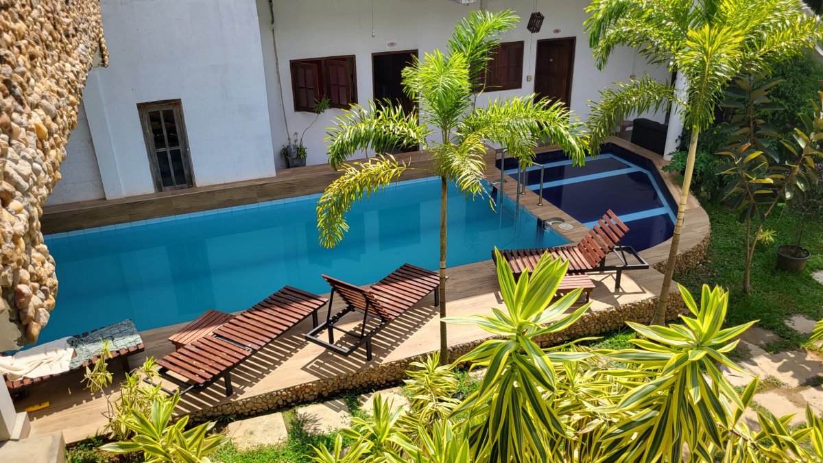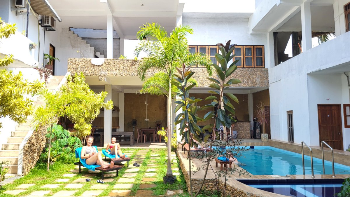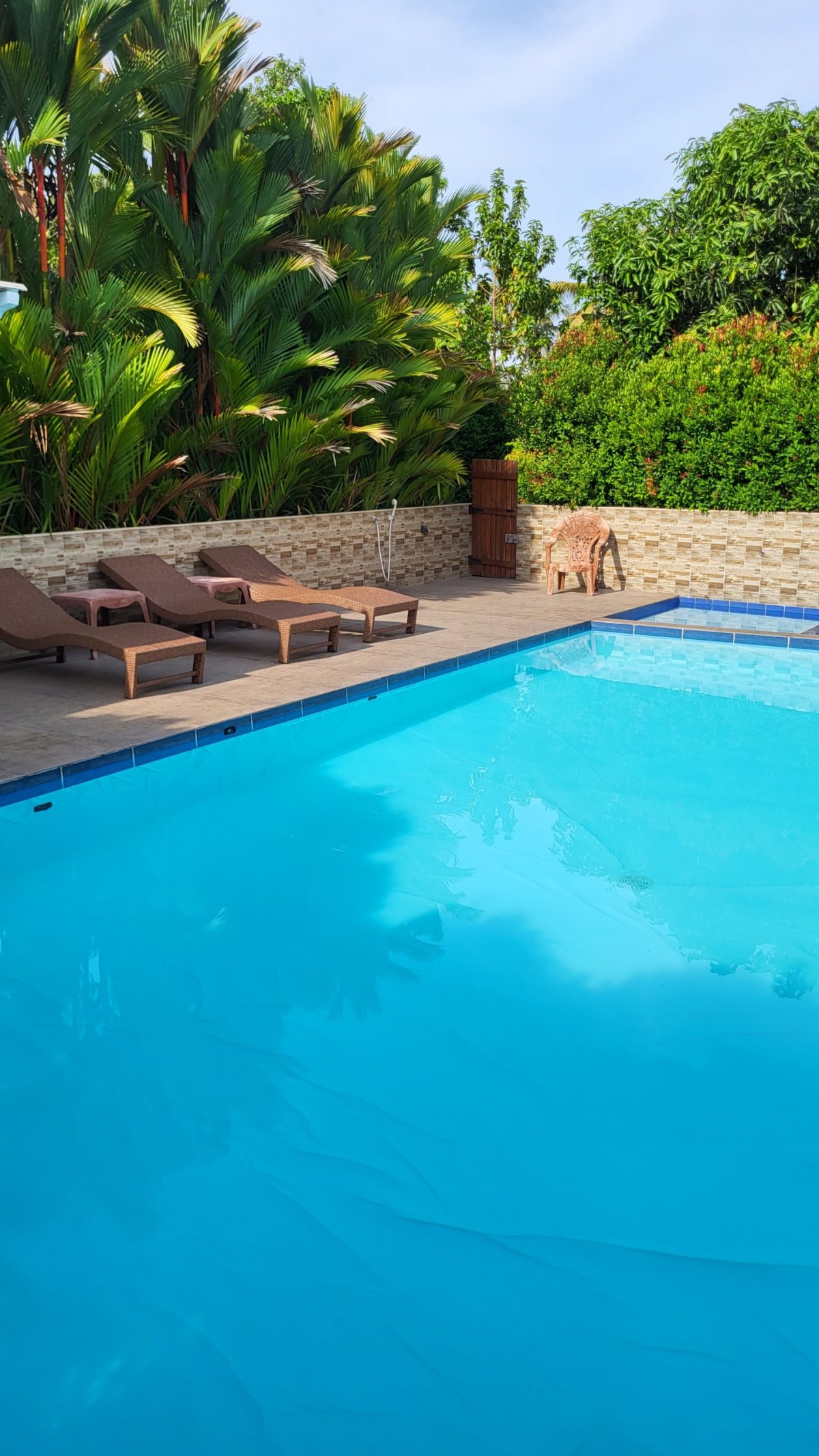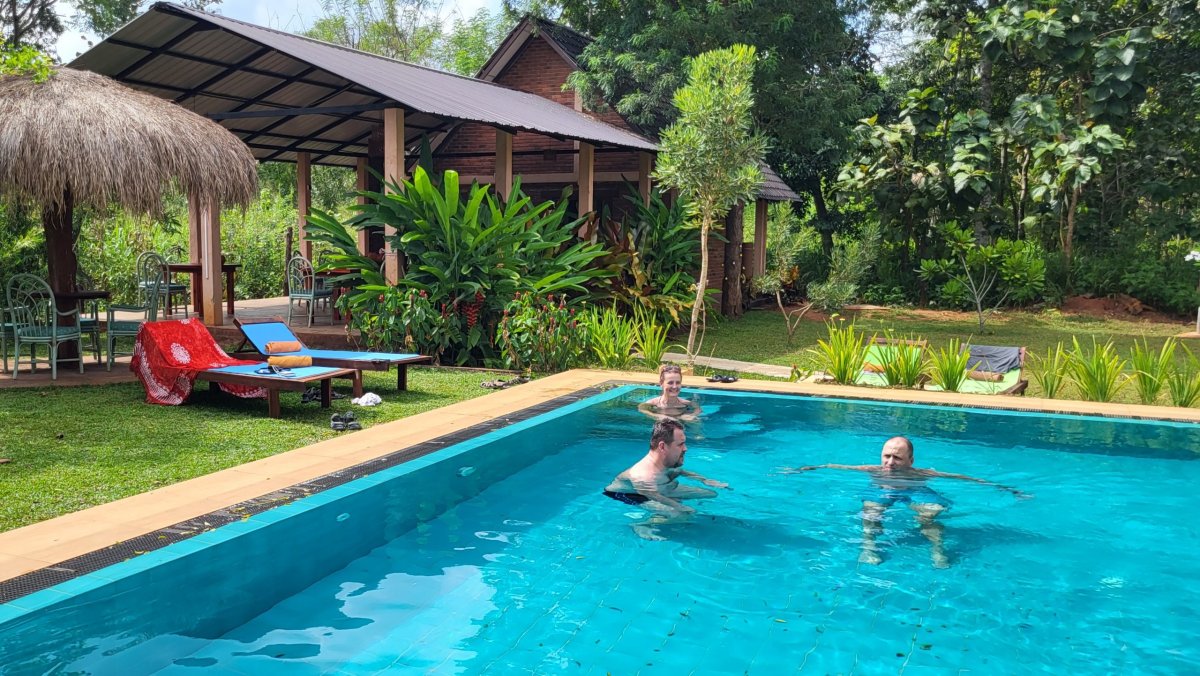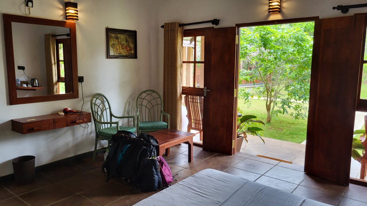 Z Dambully nás veze Chandana svým autem do dalšího ubytování v Sigiriyi. Je poledne a horko, v cíli velmi vítáme welcome drinky a poprvé a naposled i ledové ručníky :) Je tu jen 5 krásných chatek, všechny obsazené a máme tu i pejska. U bazénu si dopřáváme 2hodinový relax před výstupem na slavnou Lví Skálu. Tohle třetí ubytování je o level výš než předchozí a taky je skoro 2x dražší (600 Kč/osoba), ale máme tu v plánu si (kromě 2 výstupů) i trochu odpočinout.