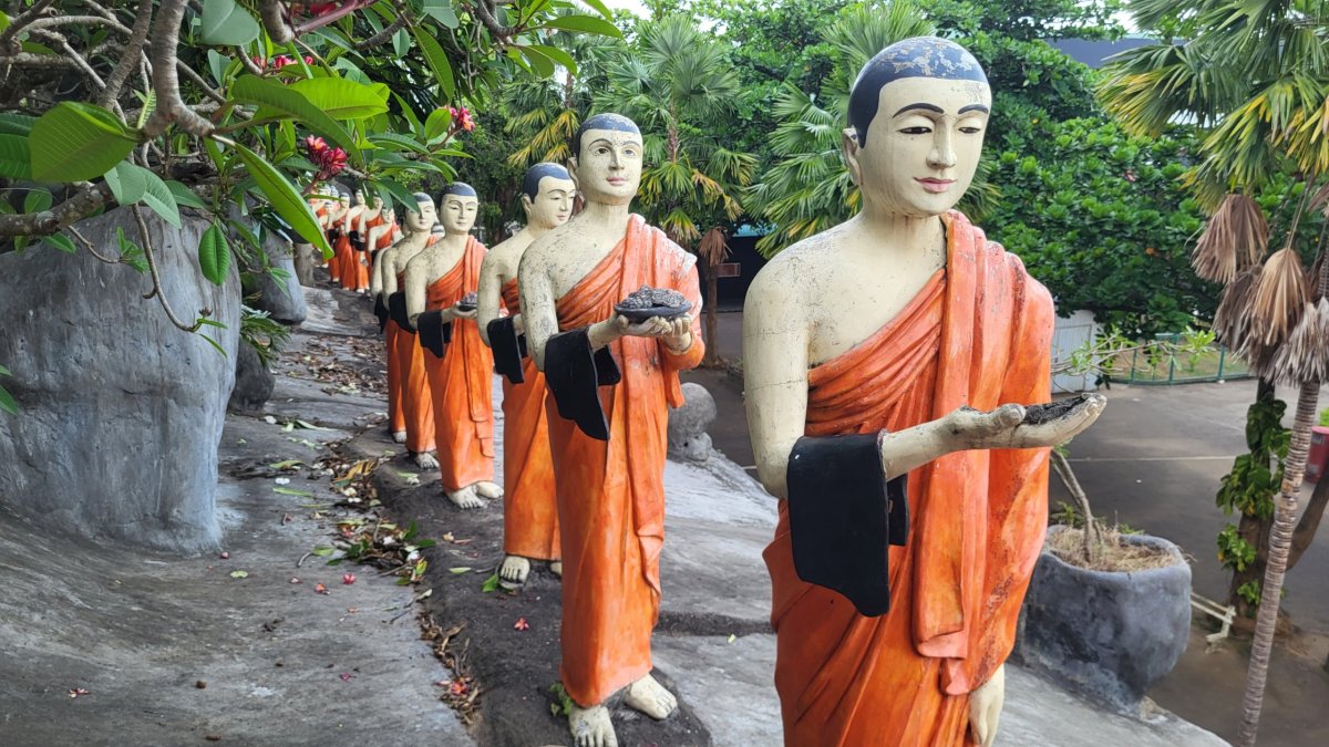 A je čas na meditaci... Snažíme se tuk-tukem vyjet až na vrchol kopce do Mahamevnawa Buddhist Monastery, ale posledních 50 metrů už s námi čtyřmi nevyjel :) V celém areálu kláštera je zvláštní ticho a klid. Potkáváme zdejší usměvavé mnichy a obdivujeme výhledy na všechny strany. Dozvíme se, že klášter je ve výstavbě již od roku 2011 a staví se pouze z darů: 80% financí darují místní, 20% cizinci.