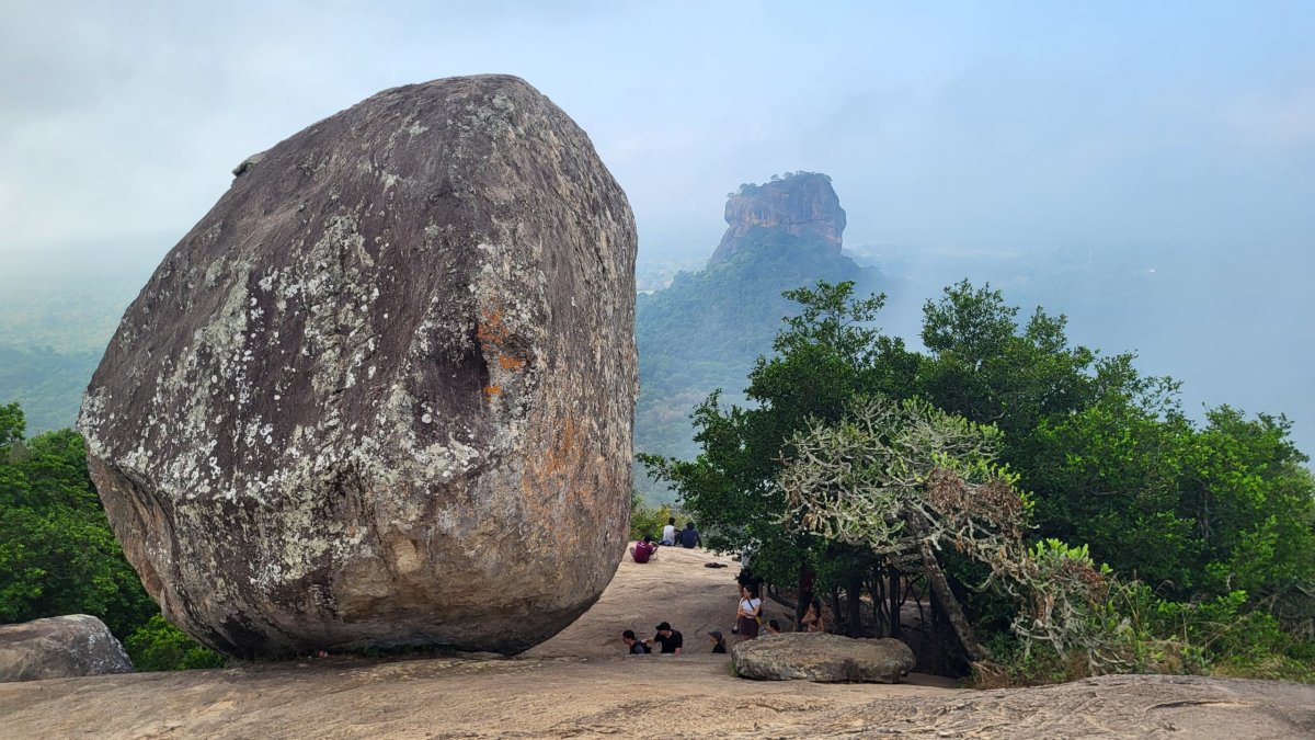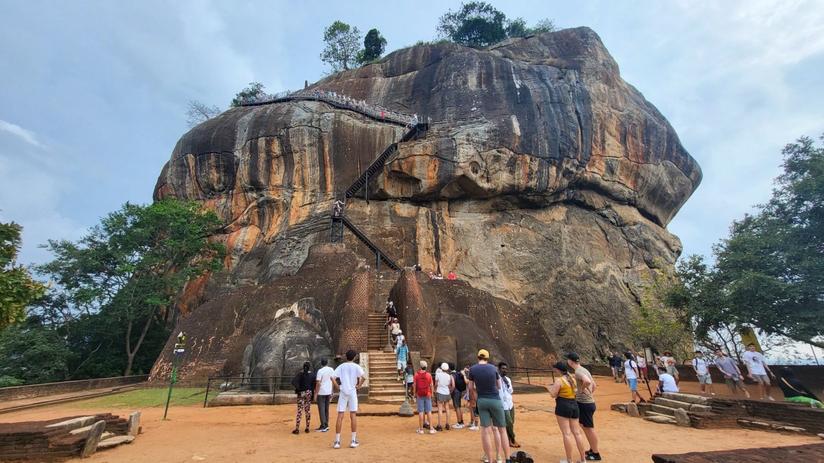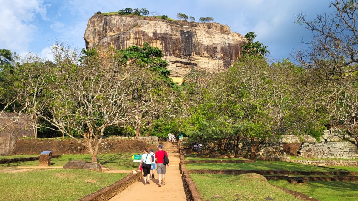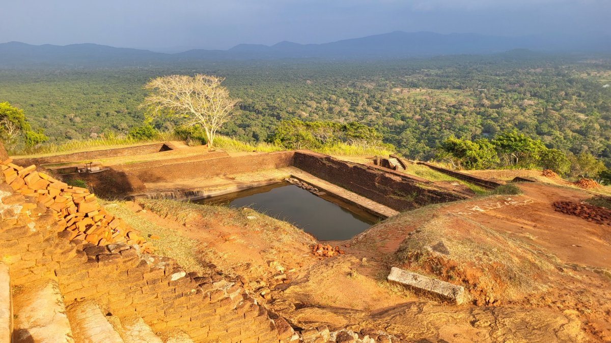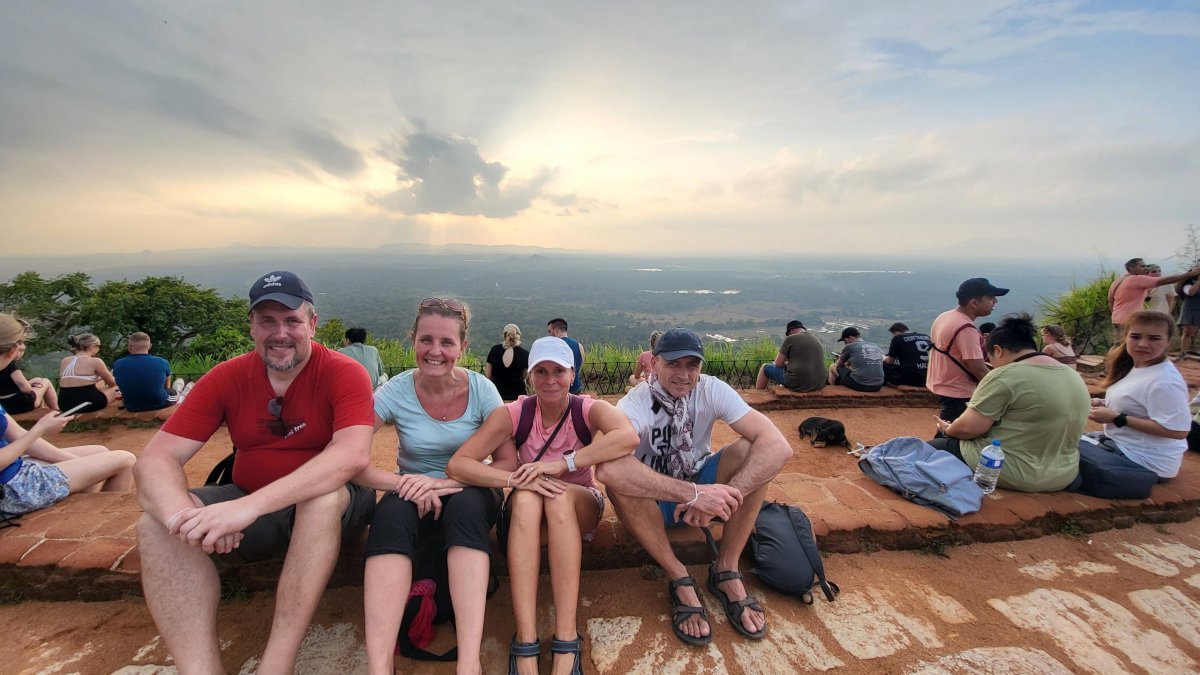 Po pár desítkách schodů jsme nahoře a před západem slunce je tu opravdu nádherně! Procházíme pozůstatky paláce i zahrad, vidíme i lidi na sousední Pidurangale a pak už sedíme s turisty z celého světa a čekáme na západ. Jsou tu Japonci, Italové, Rusové, Němci, Holanďané, Srílančané, Poláci i Češi.