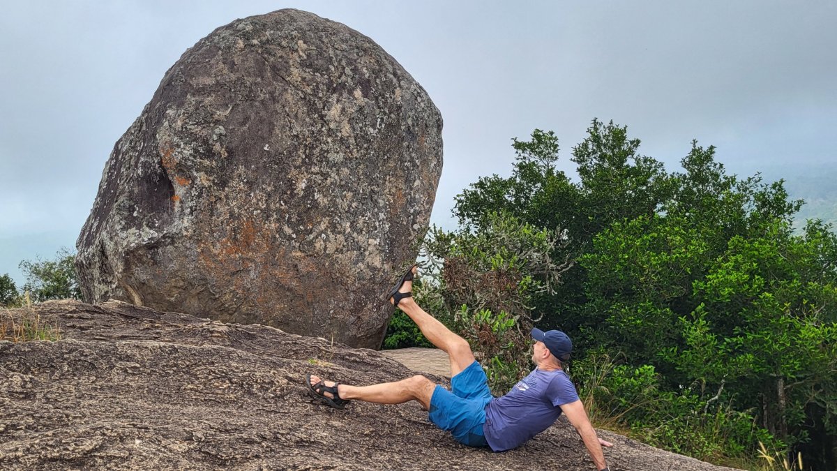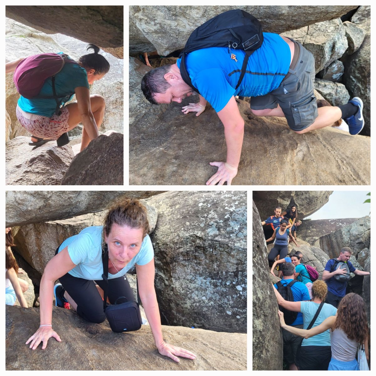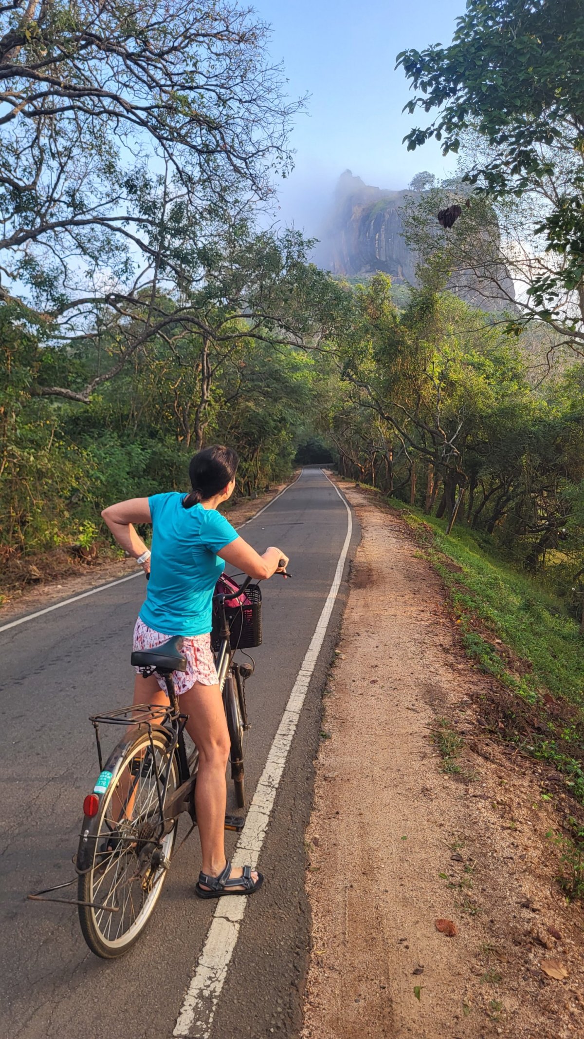 Vstáváme brzy, půjčujeme si zdarma kola a v 6 ráno po východu slunce už vyrážíme směr Pidurangala - je to 6 km skoro po rovině kolem Sigiriye. Výstup opět pohoda, trochu prudší kopec, takže zajímavější než včera, nejhorší je zase to vedro. Na posledních metrech výstupu je zácpa, tak najdeme trochu adrenalinovější zkratku :)