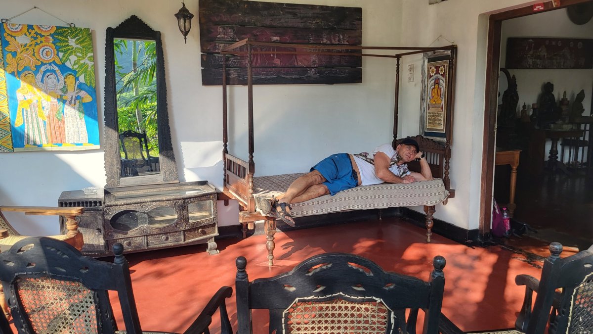 S Ajithem si hodně povídáme. I o složitém životě na Srí Lance po covidu a velké ekonomické krizi v roce 2022. Velká část obyvatel zchudla a nemá dost peněz ani na jídlo. Benzín je 2x dražší než dřív, většina obyvatel proto už nevlastní ani skútr. Rýže (zdejší potřeba č.1!) zdražila 3x a lidé (i Ajithova rodina) omezili stravu na 2 jednoduchá rýžová jídla denně :( Rýže s trochou zeleniny dopoledne a rýže s trochou zeleniny k večeru. Žádné maso, brambory nebo palačinky. Pro nás nepředstavitelné. Dříve měli Srílančané 5 dětí, dnes z ekonomických důvodů maximálně 2. Také Ajith má jen 2 děti, syna a dceru. Chtěl 5 dětí jako jeho předkové, ale nemůže si to dovolit. Ajith dříve jezdil denně s turisty na výlety, ale teď jich do Nuwary moc nejezdí a nebo jen ti s těmi velkými kufry (= s cestovkou).