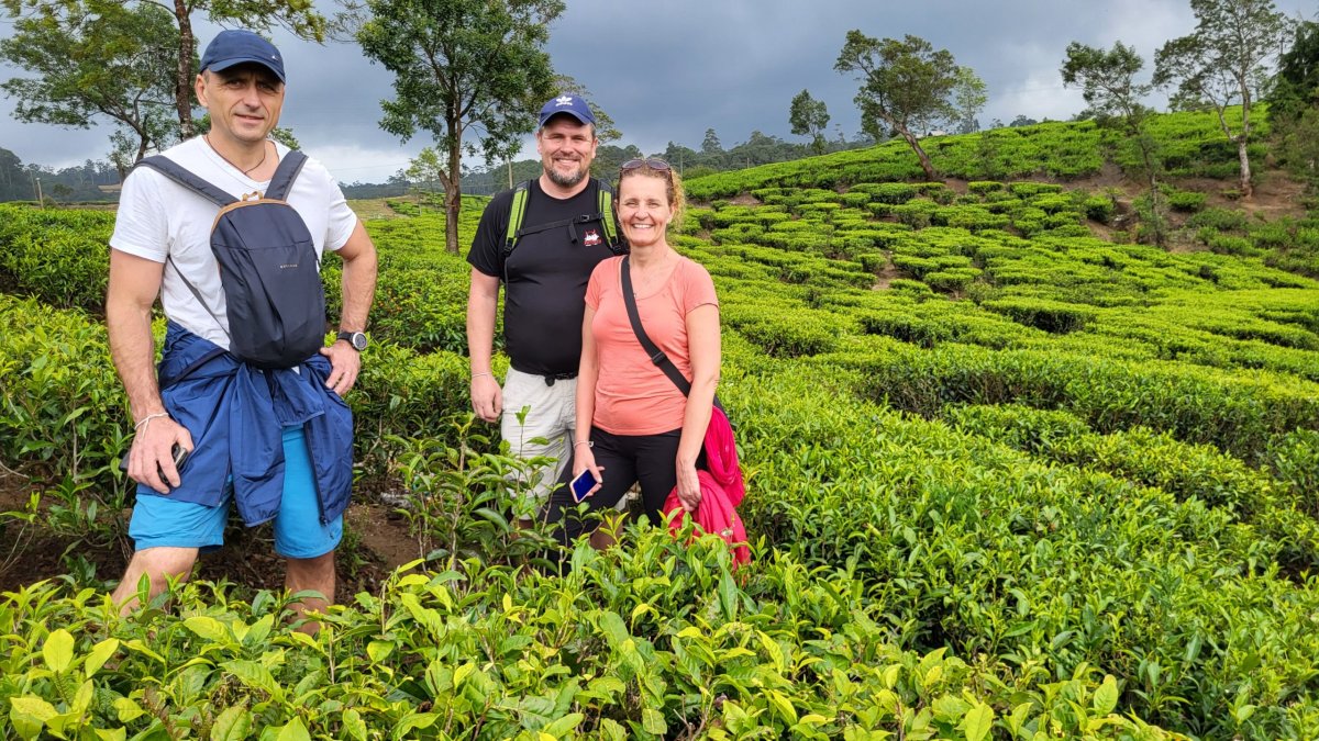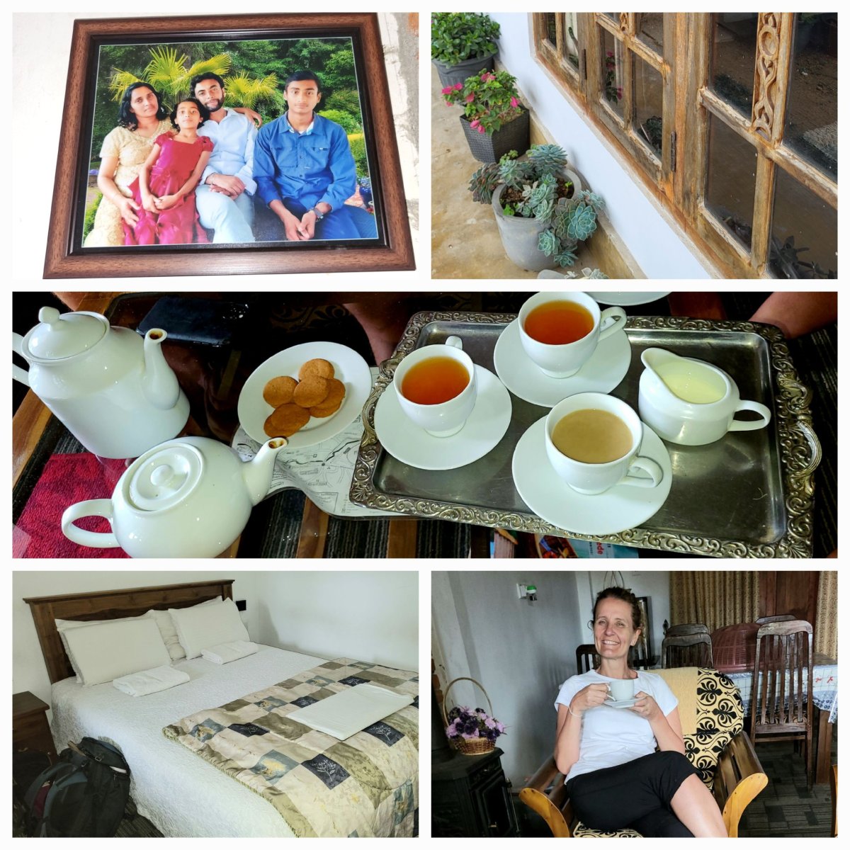 Město Nuwara Eliya leží v horách ve výšce 1900 m a pěstuje se zde jeden z nejkvalitnějších čajů na světě: Orange Pekoe. Je tu o 10 stupňů chladněji než v Kandy. Ve svém domku nás s úsměvem vítá sympatický Ajith s manželkou. Mají z nás upřímnou radost. Uvaří nám cejlonský čaj, přidají sušenky a oba mi děkují, že jsem vybrala bydlení právě u nich. Ukazují nám naše 2 pokoje a koupelny, máme k dispozici i obývák, kuchyňku a terasu na střeše domu a máme se chovat jako doma.