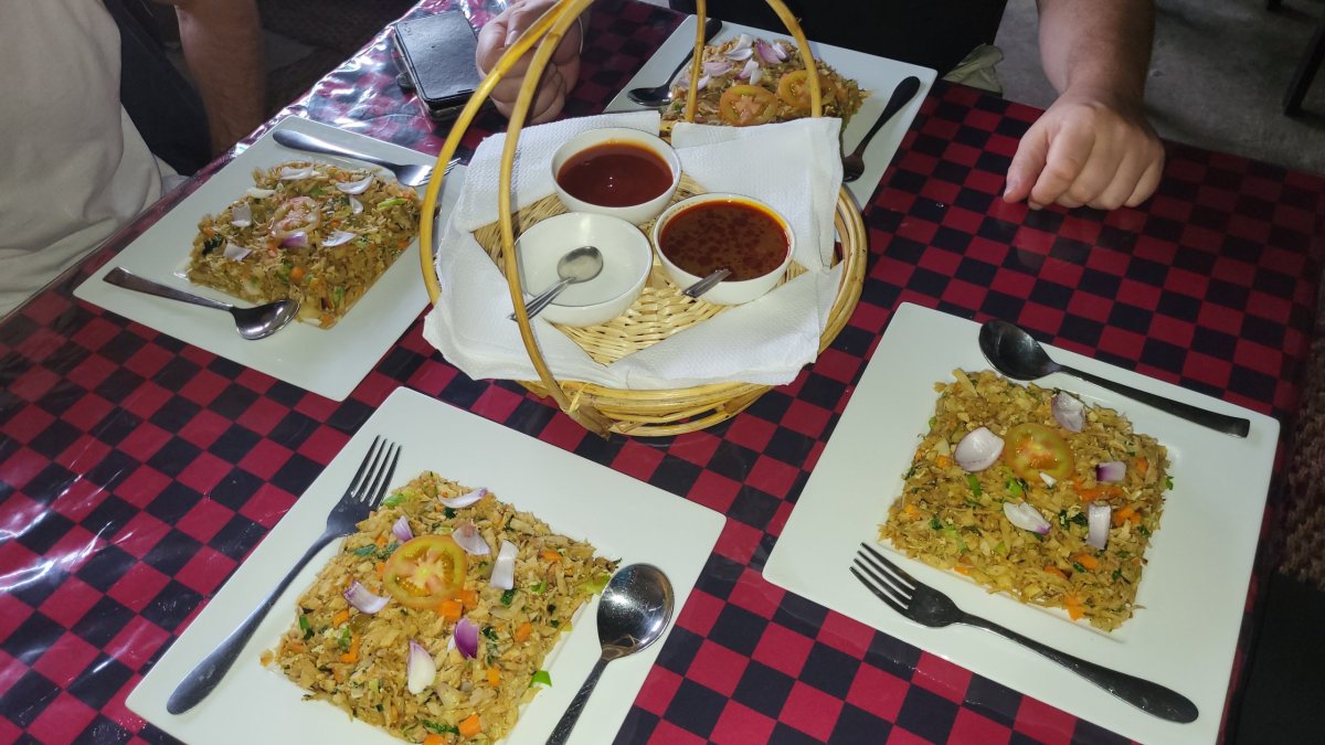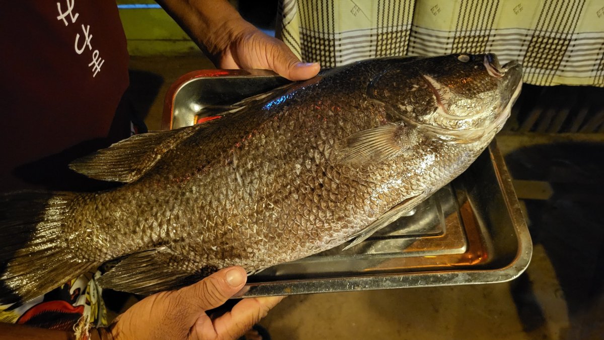 Na večeři jdeme tam, kam jsme slíbili, do Manju Cinnamon Hut. Krevet bychom se moc nenajedli, rozhodneme se raději pro velikou čerstvou rybu. Trvá to trochu déle, průběžně nakukuji do kuchyně a nakonec ve čtyřech bez problémů sníme 3kilového chňápala bílého. Dobrota!