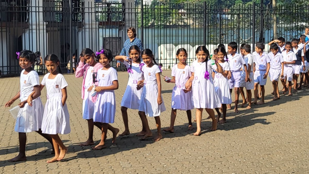 Do chrámu míří i spousta dětí. Rodiče vybírají, zda bude jejich dítě chodit do smíšené třídy nebo jen do dívčí/chlapecké. Školní uniformy jsou bílé - bohatí i chudí tak vypadají úplně stejně. Škola je na Srí Lance zdarma. Děti zde dostávají zdarma i snídani (= trochu rýže). Oběd si mají nosit z domu, ale hodně dětí v poledne otevře jen prázdnou krabičku :(