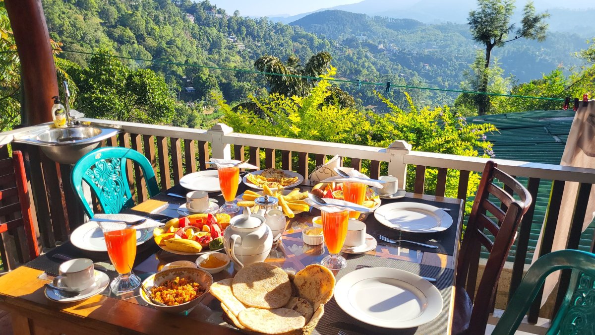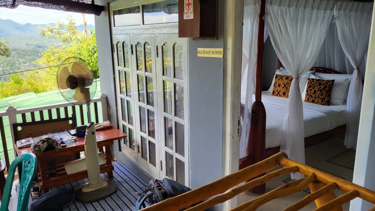 U Imanthy máme na další 2 noci 2 úžasné pokoje a ještě úžasnější 2 terasy (jak jinak :) ) s výhledem na hory. Pokoj pro 2 s polopenzí stojí 990 Kč/noc, od jídla tedy nečekáme zázraky, ale v ubytování č. 6 se nám líbí moc! Opět tedy střídáme velmi levné pokoje v Nuwara Elyia za tyhle "luxusnější", ale dražší a moc mě to takhle baví.