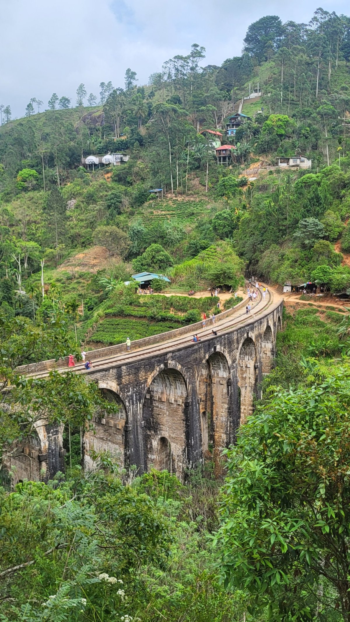 Nine Arches Bridge se nachází mezi železničními stanicemi Ella a Demodara. Most je dlouhý 91 m a vysoký 24 m a postavili na začátku 20. stol. Britové (Srí Lanka byla britskou kolonií) a to výhradně z kamenů a cihel, bez použití kovu a oceli.
