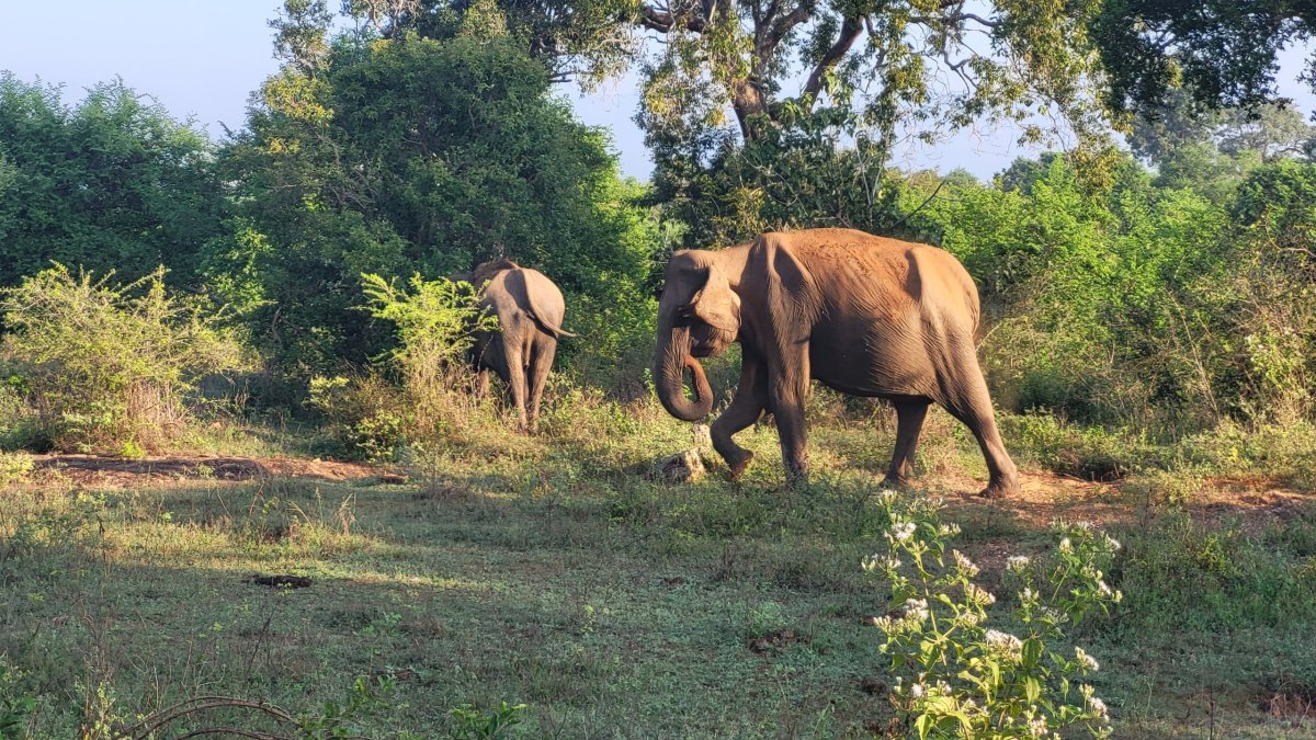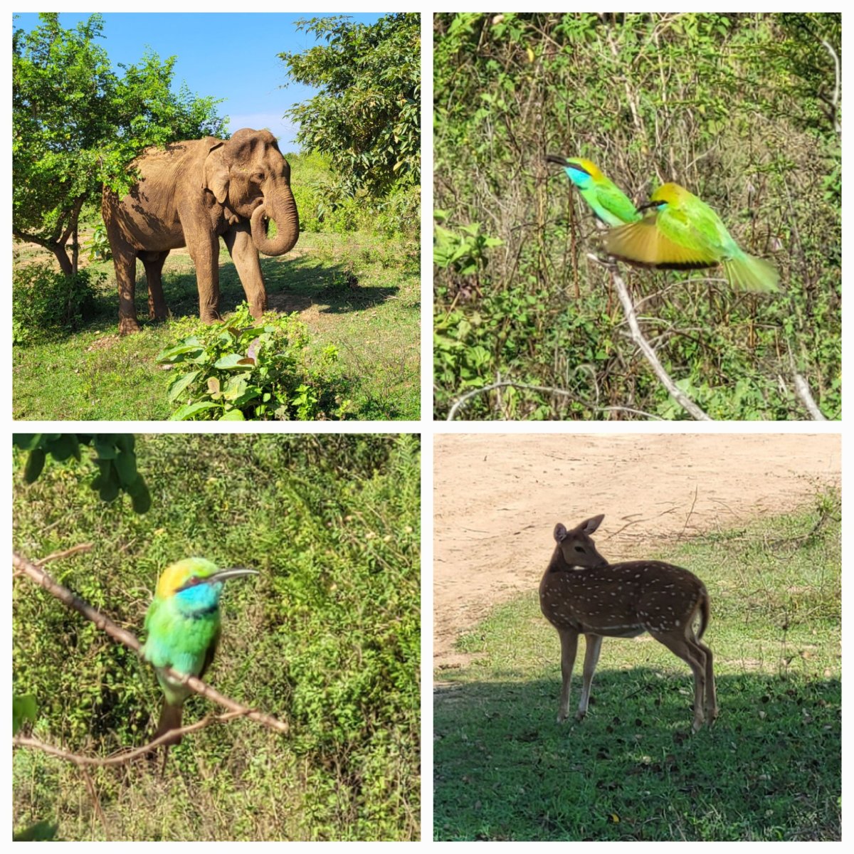 V 5:30 ráno nasedáme do džípu a vyrážíme do NP Udawalawe. Aspoň jednou uvidíme i východ slunce. Potkáváme první slony, žije jich tu několik set. Řidič nám půjčuje dalekohled a tak vidíme hezky i krokodýly, buvoly, divoká prasata, orly, různé ptáky a taky národní strom Srí Lanky - ferreu. Se safari v Botswaně je tohle nesrovnatelné, ale slonů jsme viděli poměrně hodně a hezky zblízka a za 4,5 hodiny platíme jen 50 dolarů za osobu, za to by nás v Africe dovezli maximálně k bráně parku :)