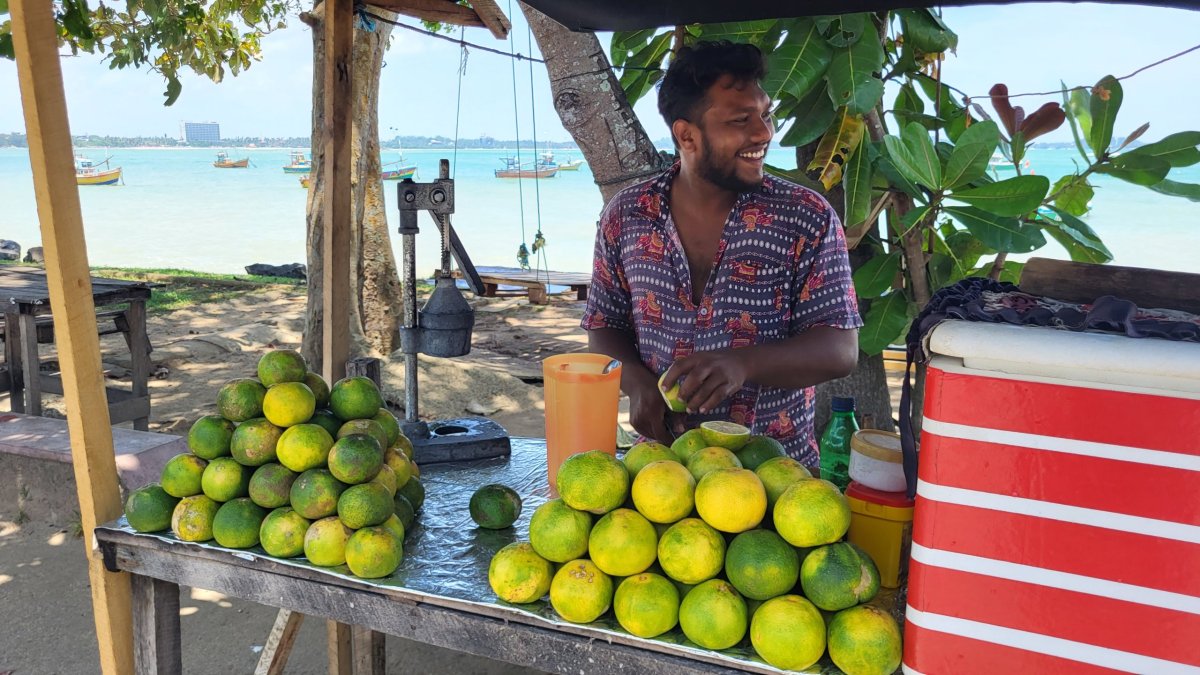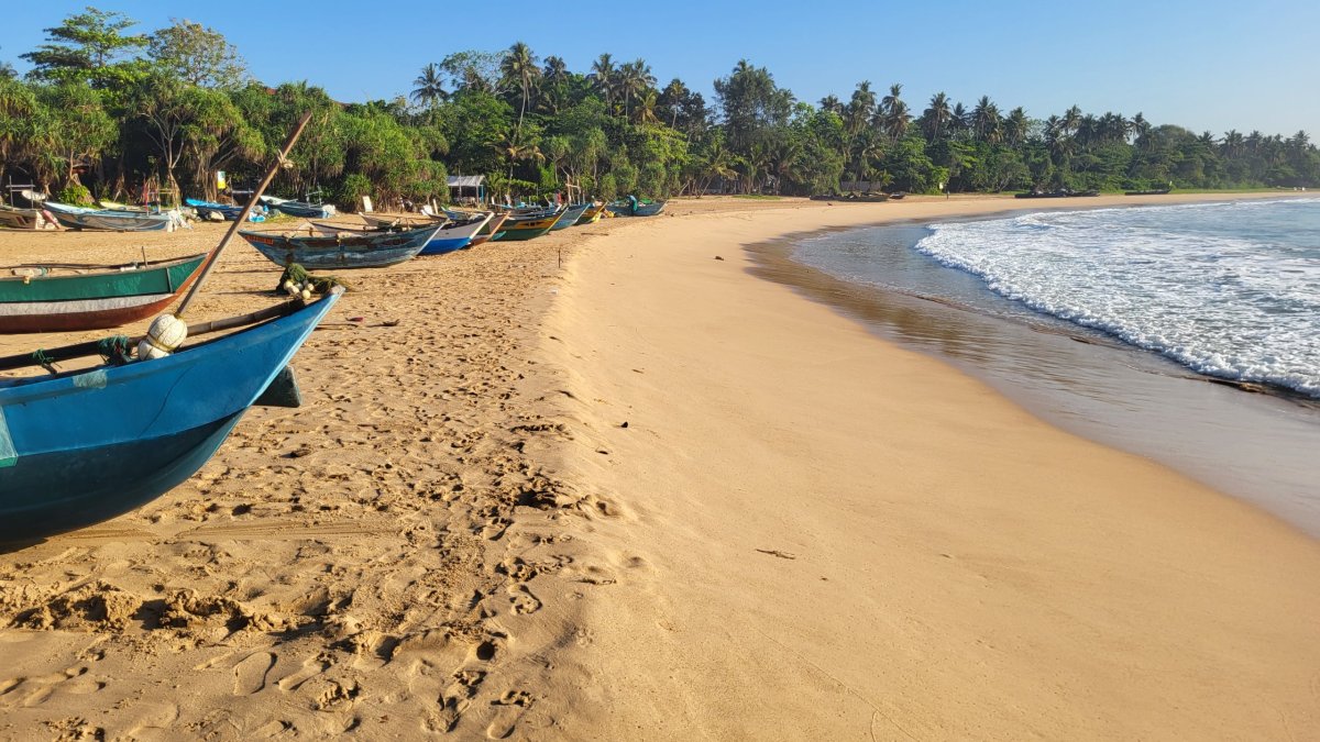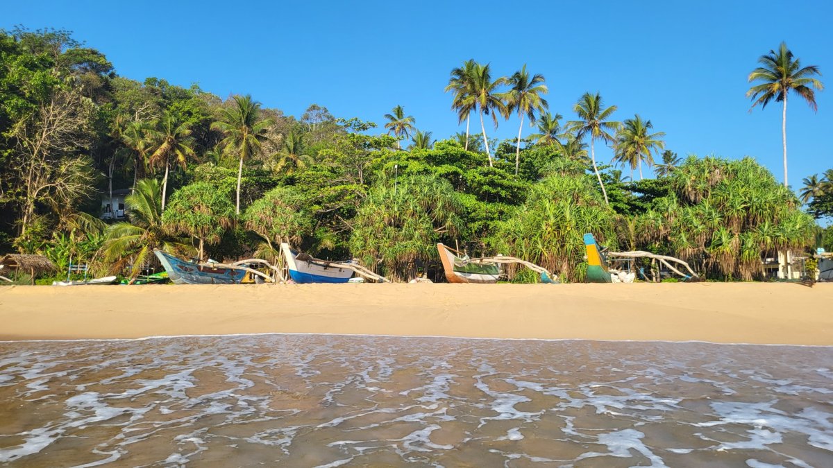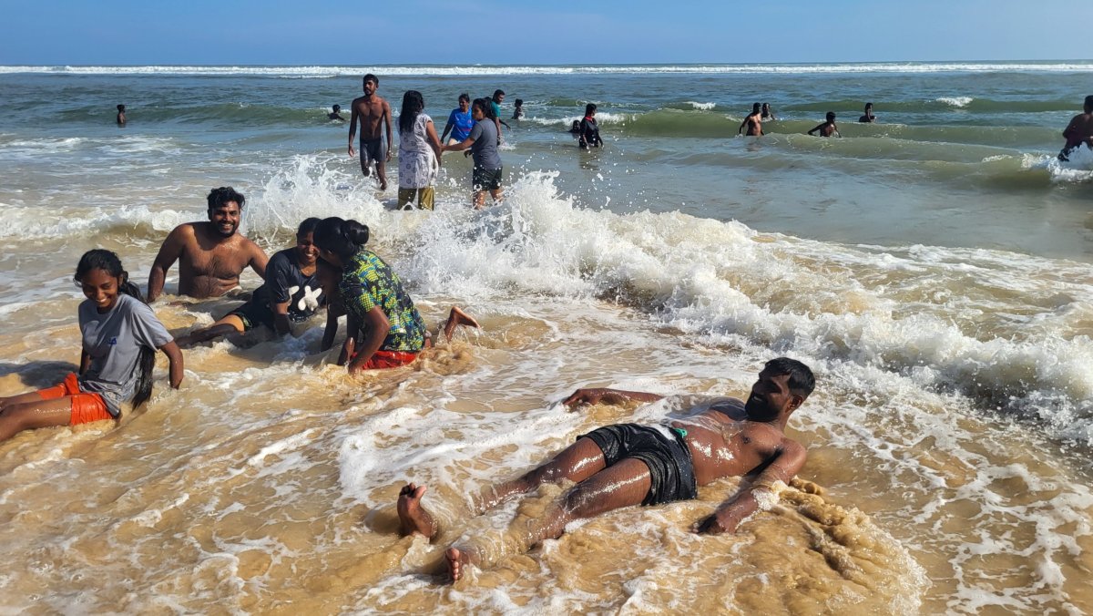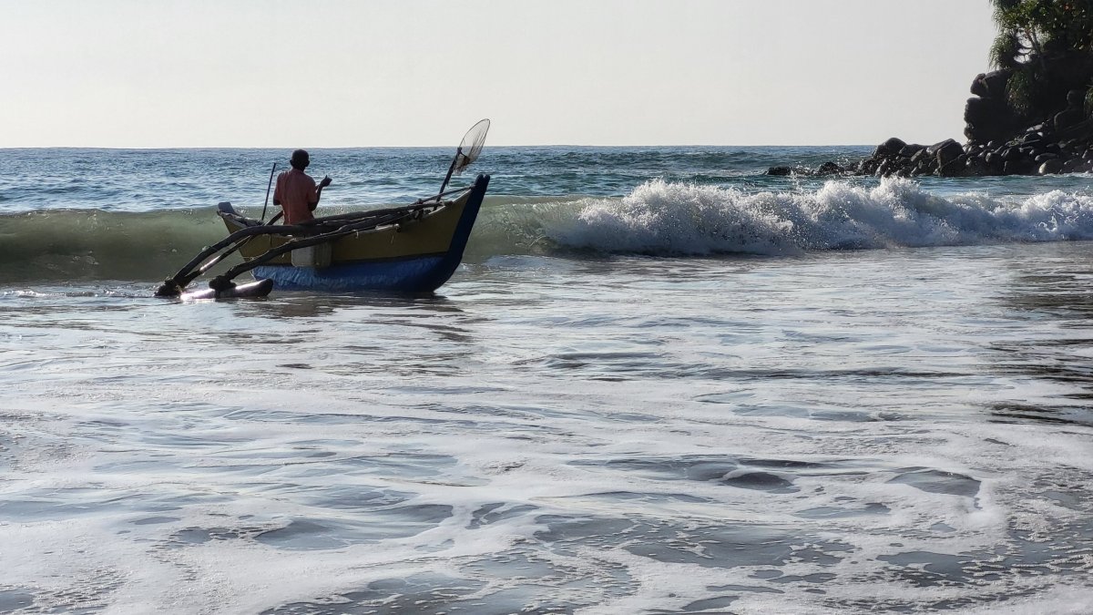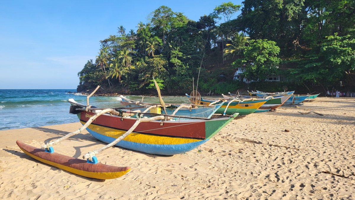 Zastavujeme se v rybářské vesnici Weligama a všude kolem nás jsou vidět i cítit ryby: čerstvé, sušené, i na talíři. Za pár korun si dáváme místní fresh juice a ani neřeším, z jaké je vody. Na pláži objevujeme malý dřevěný stánek a dáváme si vynikající rotti s chobotnicí, cibulí a sýrem! A jedeme se koupat! Vybírám Polhena Beach, jednu z nejhezčích pláží ostrova. Je neděle, na pláži je spousta místních rodin a všichni se pořád smějí. Ženy na Srí Lance nenosí plavky, koupou se oblečené.