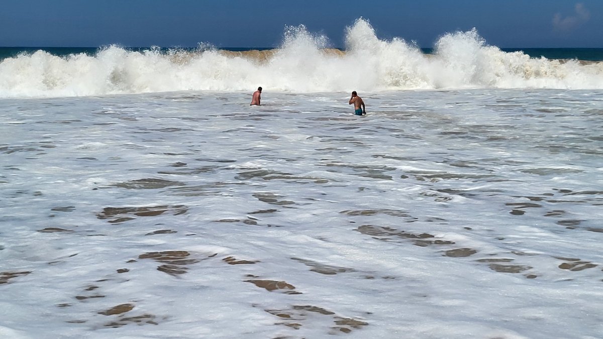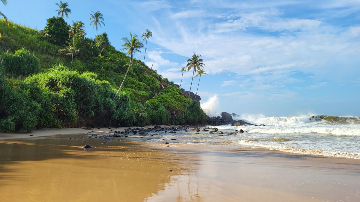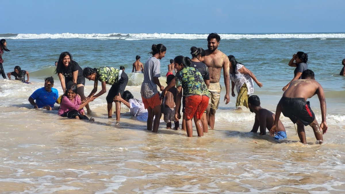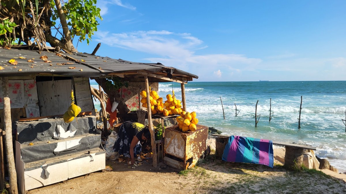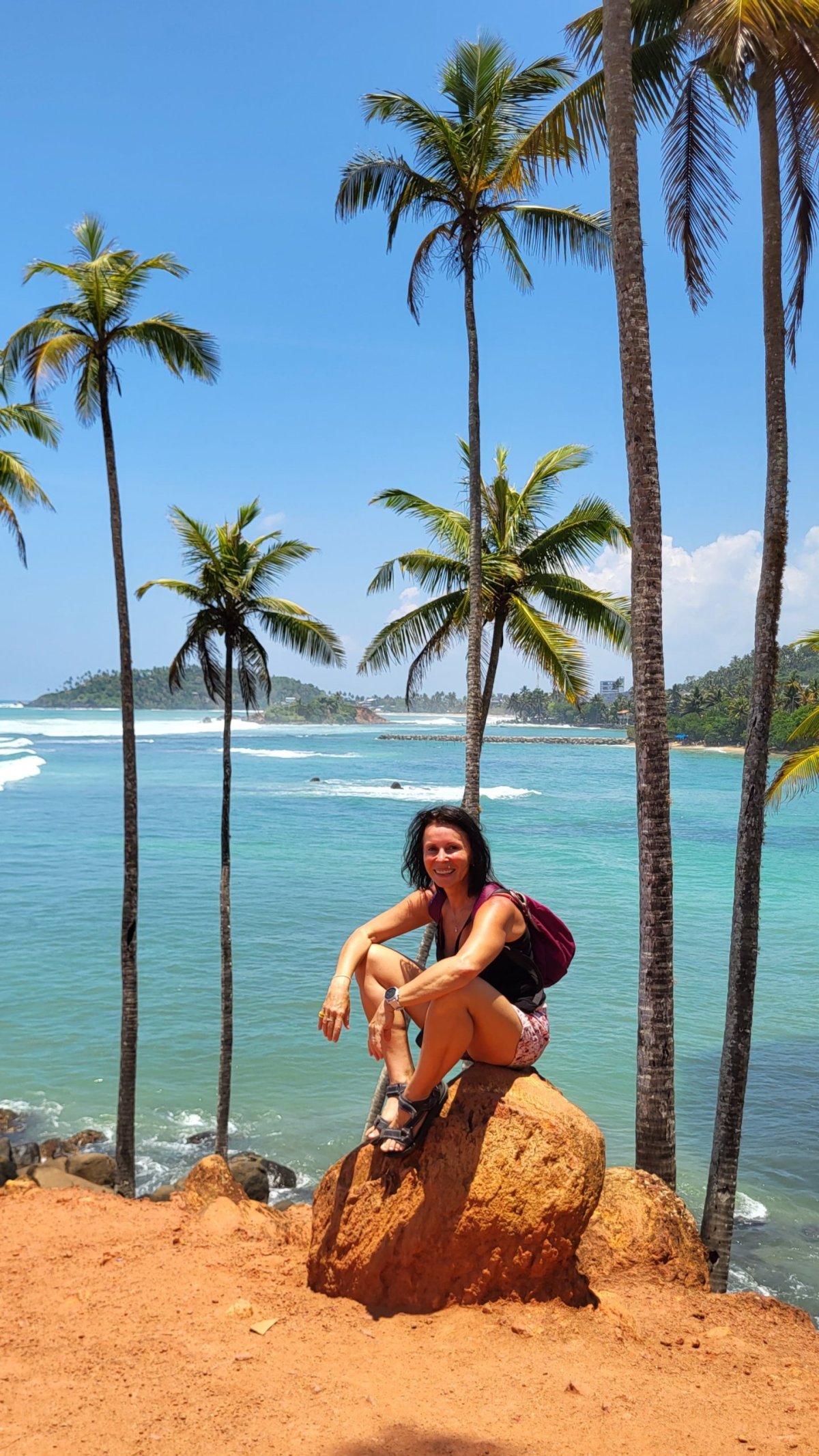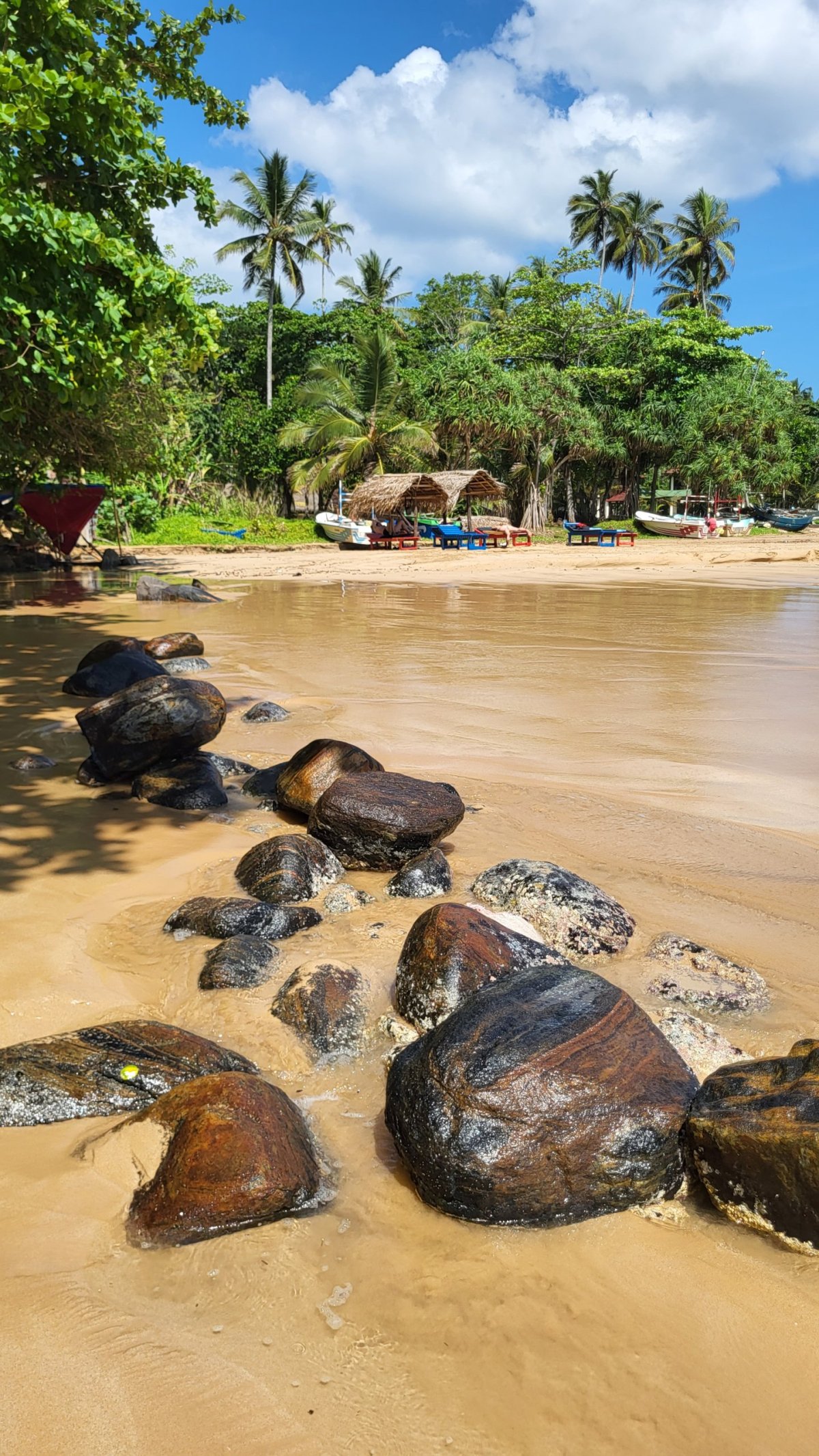 Zastavujeme se v rybářské vesnici Weligama a všude kolem nás jsou vidět i cítit ryby: čerstvé, sušené, i na talíři. Za pár korun si dáváme místní fresh juice a ani neřeším, z jaké je vody. Na pláži objevujeme malý dřevěný stánek a dáváme si vynikající rotti s chobotnicí, cibulí a sýrem! A jedeme se koupat! Vybírám Polhena Beach, jednu z nejhezčích pláží ostrova. Je neděle, na pláži je spousta místních rodin a všichni se pořád smějí. Ženy na Srí Lance nenosí plavky, koupou se oblečené.