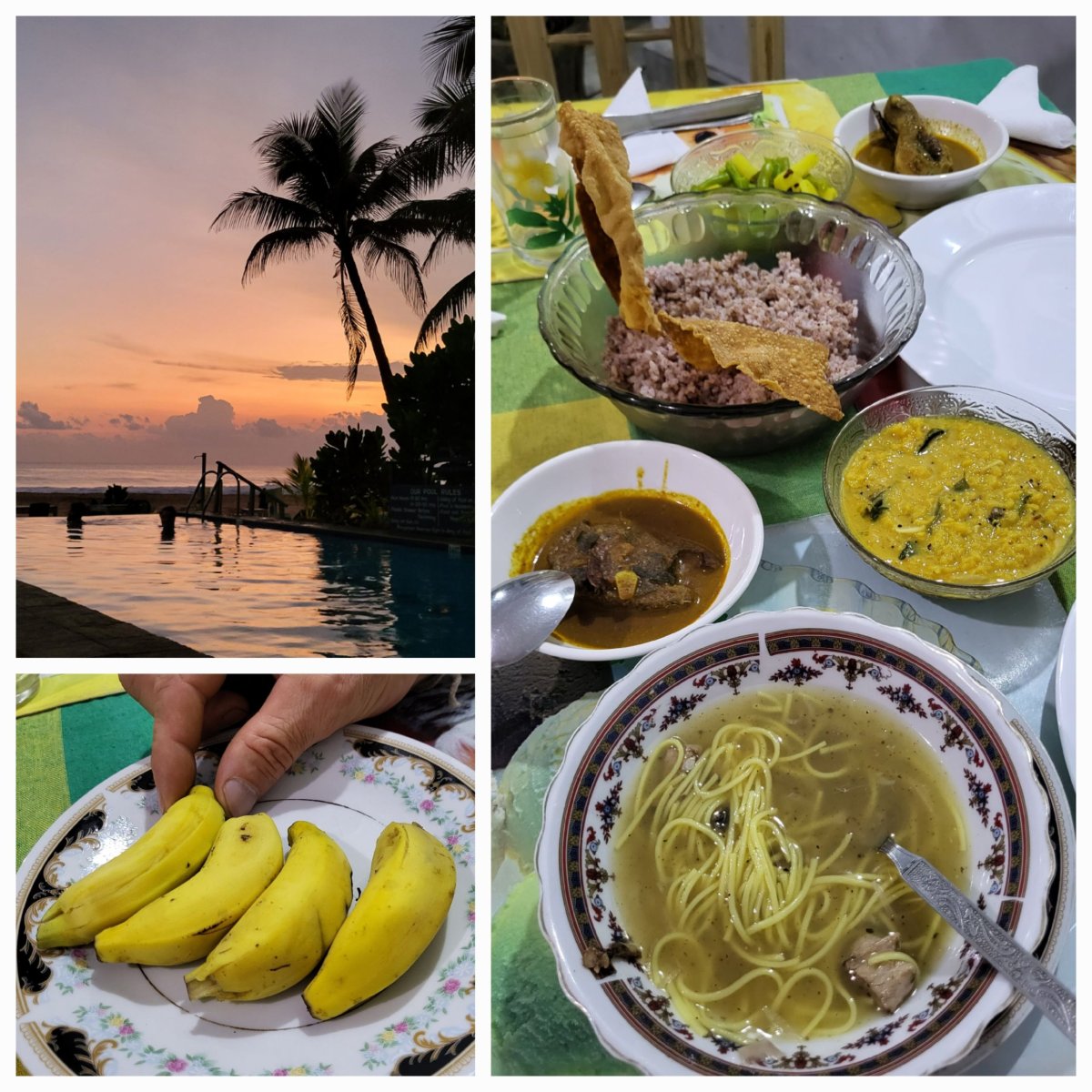 Večeříme v malé rodinné restauraci, která má na googlu hodnocení 5 z 5. Jenže to není na Srí Lance žádná výjimka. Objednáváme si seafood soup, chicken curry, fish curry, vše spicy, fresh juice a po jídle dostáváme nejmenší banány na světě. Potkáváme tu 2 mladé Čechy, kteří sem přijeli z letiště taxíkem za 10000 rupií! 800 Kč! Je to víc, než jsme tu zatím dali za dopravu pro nás dva! Prý se busem báli a nějaký taxikář jim řekl, že z letiště stejně žádný nejede. Aspoň, že nemají ty velké kufry! Vynadali jsme jim a další den je vyprovodili na autobus :)