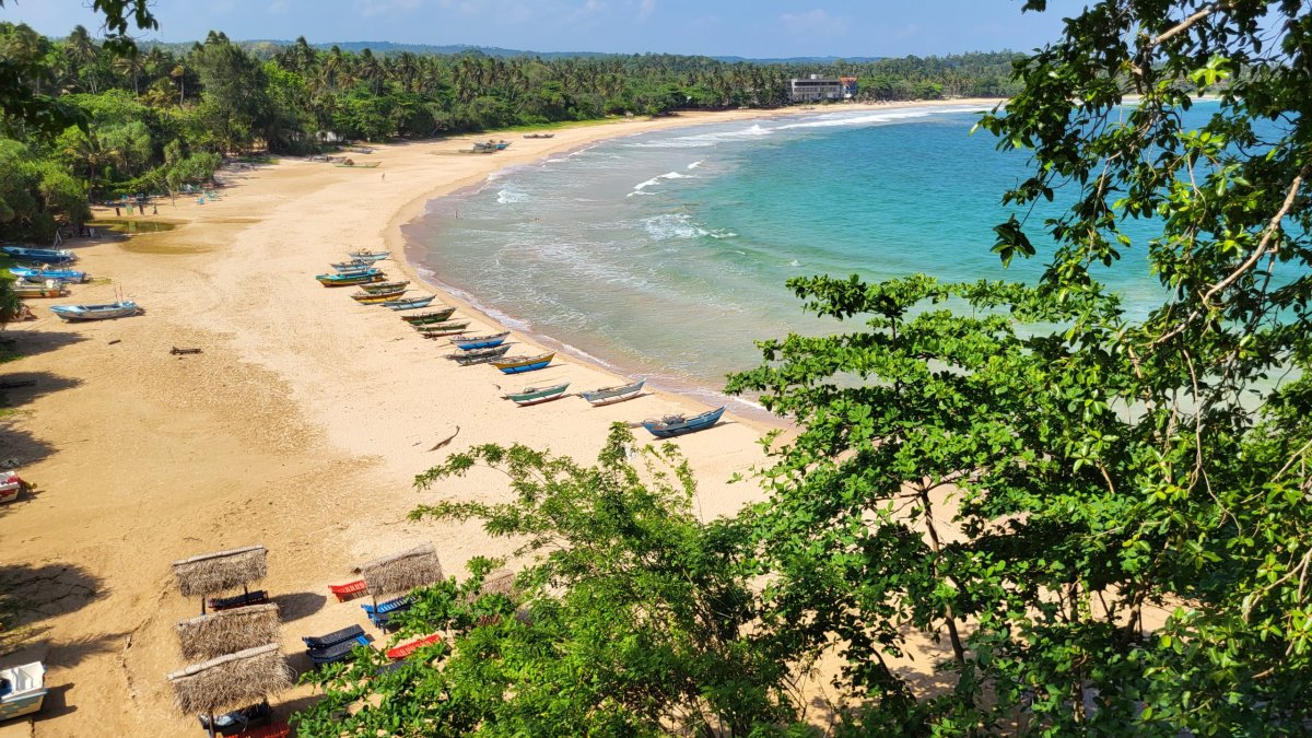 Následuje povinná zastávka na Mirissa Beach a "výstup" na Parrot Rock. Mirissa Beach je údajně nejhezčí a proto i nejnavštěvovanější pláží Srí Lanky. Dnes tu ale moc lidí není: