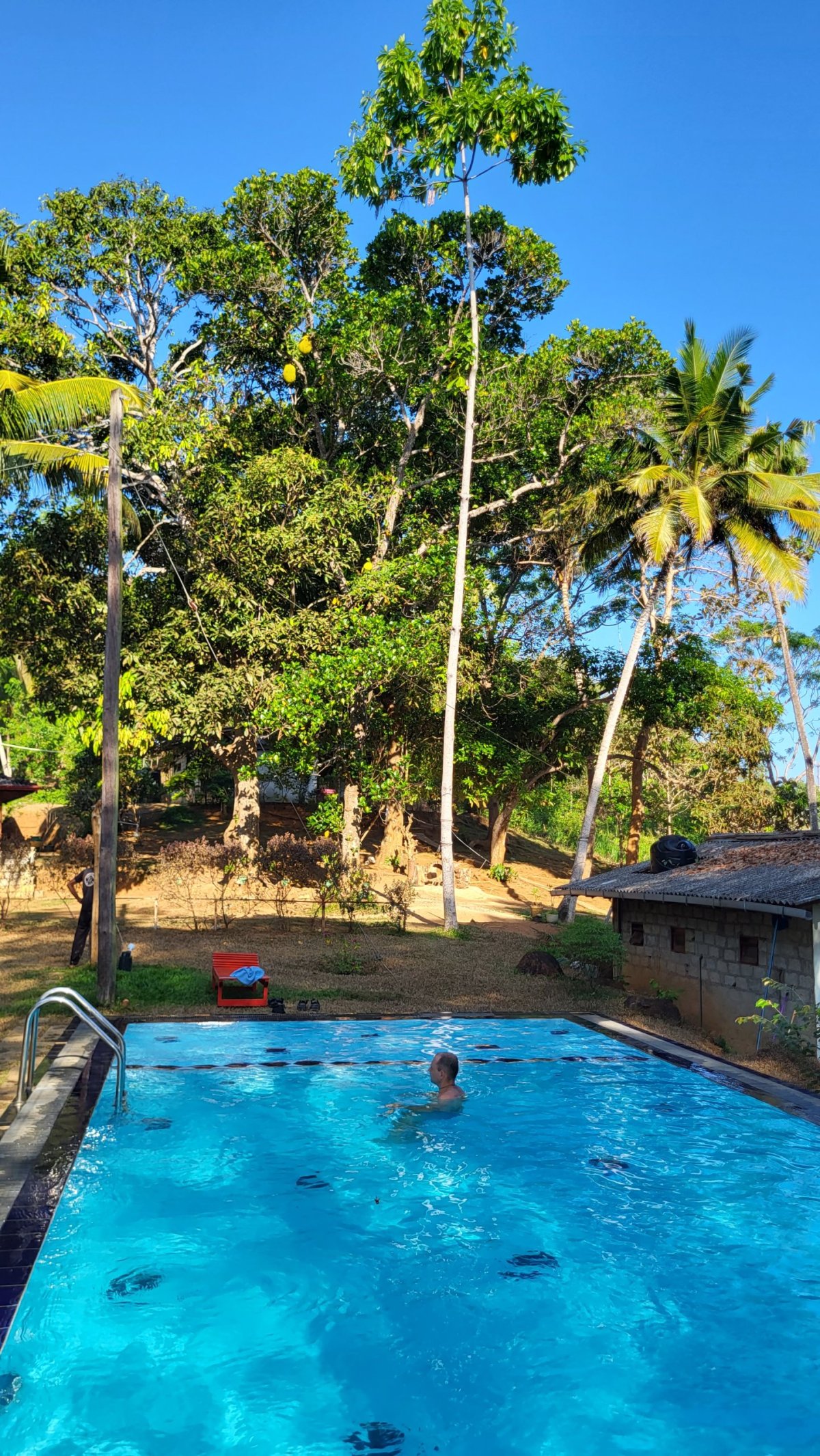 Imantha nás osobně odváží k busu. Asi 2x přestupujeme a za pár hodin a korun vystupujeme v Udawalawe. Blížíme se k nejlevnějšímu ubytování na světě za 2 dolary/noc se snídaní, bazénem a klimatizací! Zkusit se má všechno :) a taky je třeba dodržet moji strategii střídání levnějšího a dražšího ubytování. Dostáváme dva velké 4lůžkové pokoje, čistá a voňavá prostěradla a ručníky, klimatizace je tichá a bazén čistý. Kupodivu vše za ty peníze funguje. Trochu postrádáme toaletní papír a mýdlo, ale s tím si poradíme. A dnes už máme padla, zabíráme až do západu slunce zdejší lehátka a bazén.
