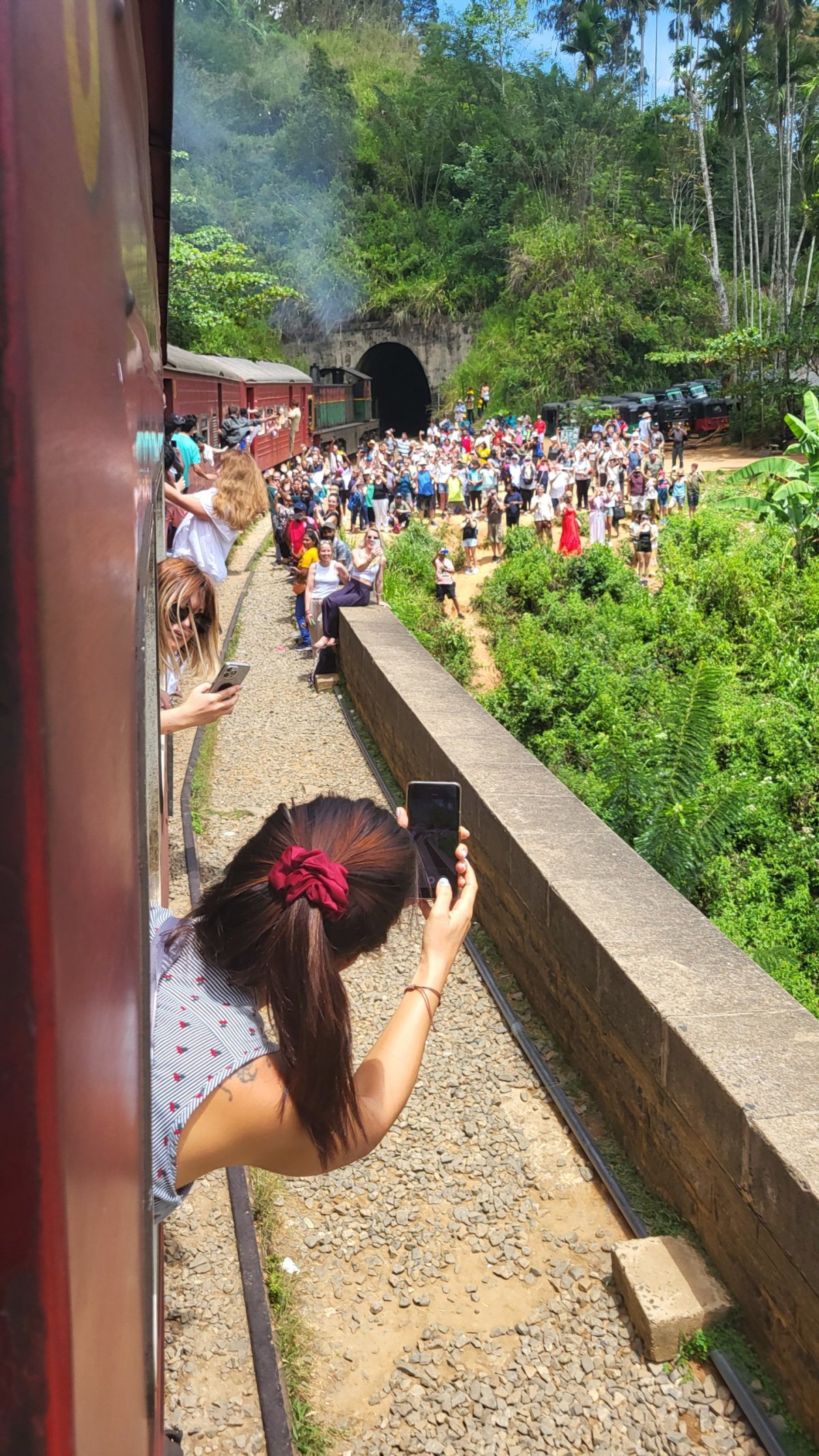 Další část výletu nám vymyslel Imantha, věděl, že mě bude bavit. Opět to bude vlak, ale pojedeme pouze jednu jedinou zastávku, za to tu nejhezčí: z Demodary do Elly přes most Nine Arches Bridge! Tuk-tuk nás doveze na jedno nádraží a bude nás čekat na druhém. Na nádraží platíme 50 rupií (4 Kč) za lístek a zabíráme obě strategická místa na chodbě, na zemi u protějších otevřených dveří. A za chvíli se mi plní další sen - celou cestu (tedy jen asi 7 minut) visím ven z vlaku :) Cestou nám mávají desítky místních i turistů, co postávají u kolejí a na mostě už jich čekají stovky, atmosféra neskutečná, všichni se smějí, křičí na nás, mávají, fotí si nás a my zase je :) A pak už projíždíme dlouhým tunelem a vystupujeme v Elle, kde čeká náš tuk-tukář. Takových zážitků za 4 Kč :)