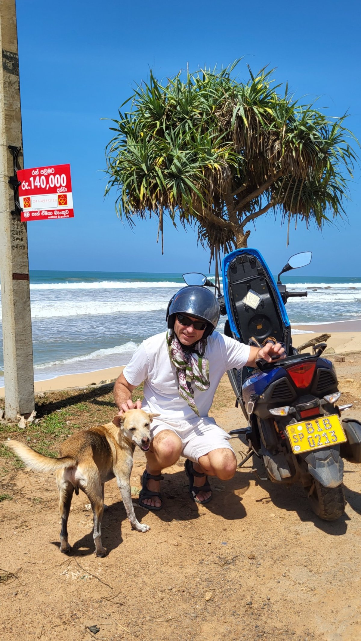 ... si půjčujeme skútr! Stojí 200 Kč/den, benzín 27 Kč. Jezdí se vlevo, mezinárodní řidičák nutný, na silnicích jsou policejní kontroly. Cestou míjíme několik buddhistických i hinduistických chrámů a také mešit a nejdřív zastavujeme na nejjižnějším místě Srí Lanky - u majáku Dondra.
