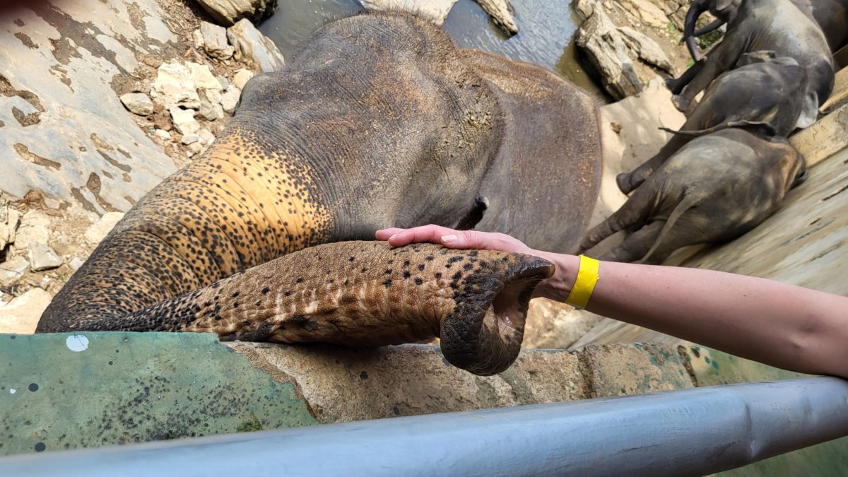 Údajné týrání slonů (viz google recenze) nemůžu potvrdit. Nejvíce kritizované atrakce jako "mytí slona" nebo "jízda na slonovi", ani dotěrné prodejce na ulicích jsme neviděli, krmení pro slony jsme dostali zdarma. Věřím, že velká část ze vstupného (16 dolarů pro ty, co tu nebydlí) jde opravdu přímo slonům. Přeci jen je s nimi dost práce a každý z nich sežere přes 100 kg potravy denně.
