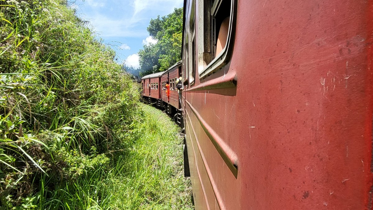 Místní tratě byly postaveny na přelomu 19.-20. stol. Soupravy jsou staré a vlak je velmi pomalý. 65 km pojedeme skoro 4 hodiny! Ve vlaku je narváno, prakticky celou cestu stojíme nebo sedíme na chodbě u dveří na WC, ale za to krásně vidíme ven a v otevřených dveřích se s ostatními cestovateli postupně vystřídáme. Jedeme max. rychlostí 30 km/hod. Ve stanicích nastupují prodavači a procházejí vlak s čerstvým jídlem, oříšky a čajem.