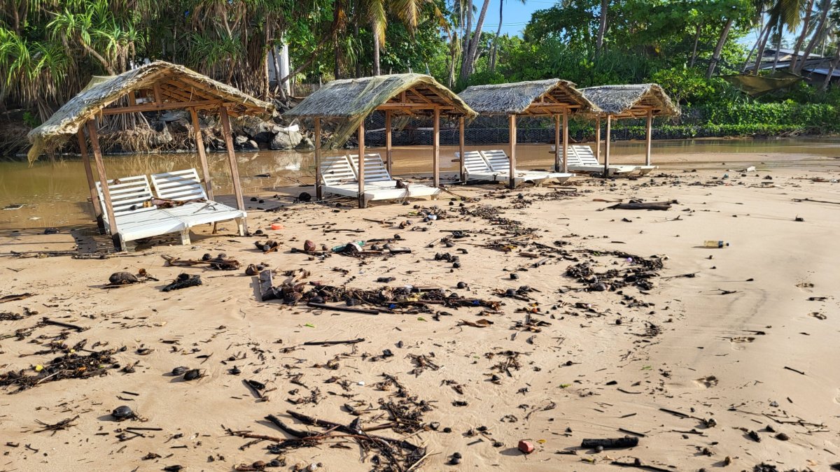 V 7 ráno jsme na pláži úplně sami. Moře je teplejší než vzduch, ale já už neplavu! Vidíme škody po noční bouřce. Všude binec, klacky, větve, kokosové ořechy, polámané slunečníky, zničený stánek naší trhovkyně, voda z oceánu je pořád i za pláží, ale místní lidé už to vše začínají uklízet, odnášet a pláž zametat. Luky pomáhá rybáři vytáhnout jeho loď na pláž, je pěkně těžká. Původně jsme se dnes měli válet na pláži, ale to nám moc nejde a tak i dnešní naplánovaný relaxační den raději věnujeme aktivnímu poznávání ostrova a válení se odkládáme na důchod.