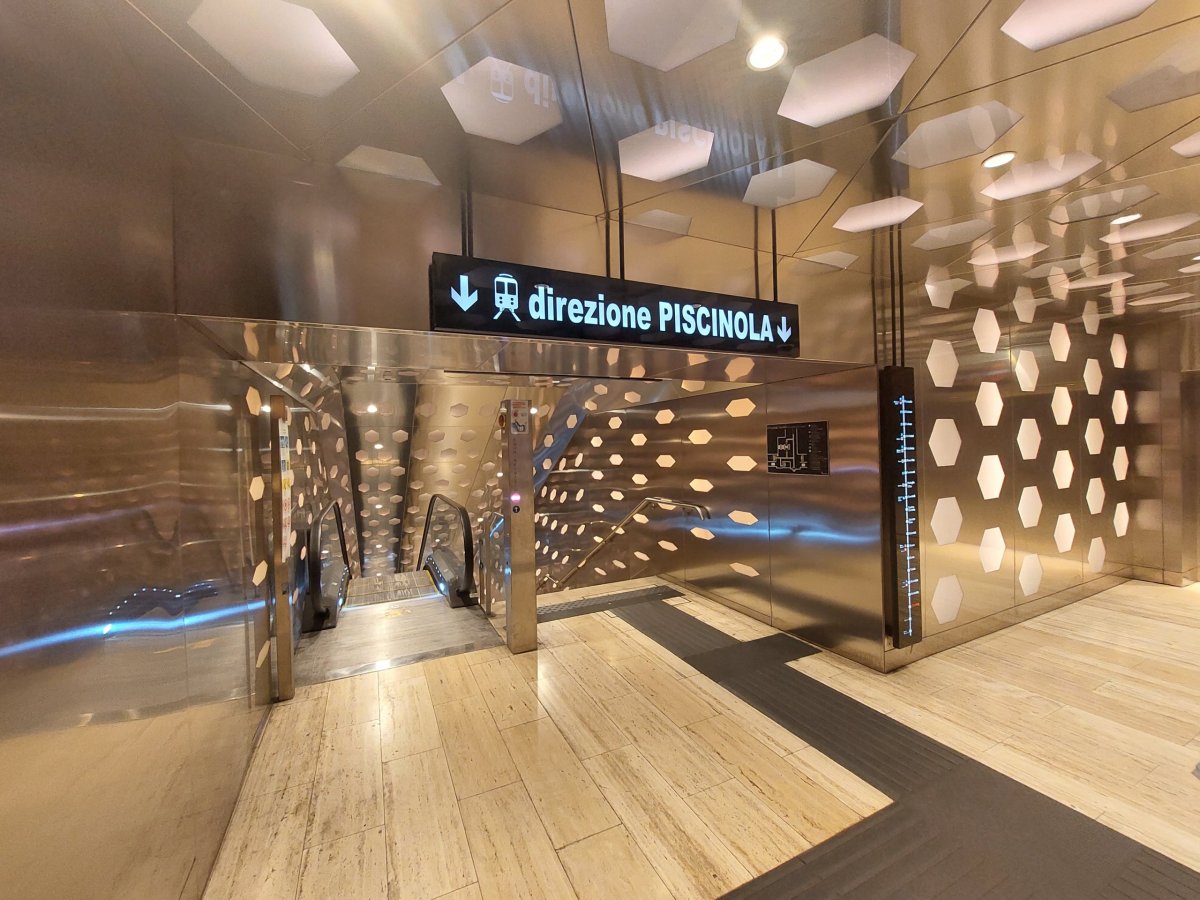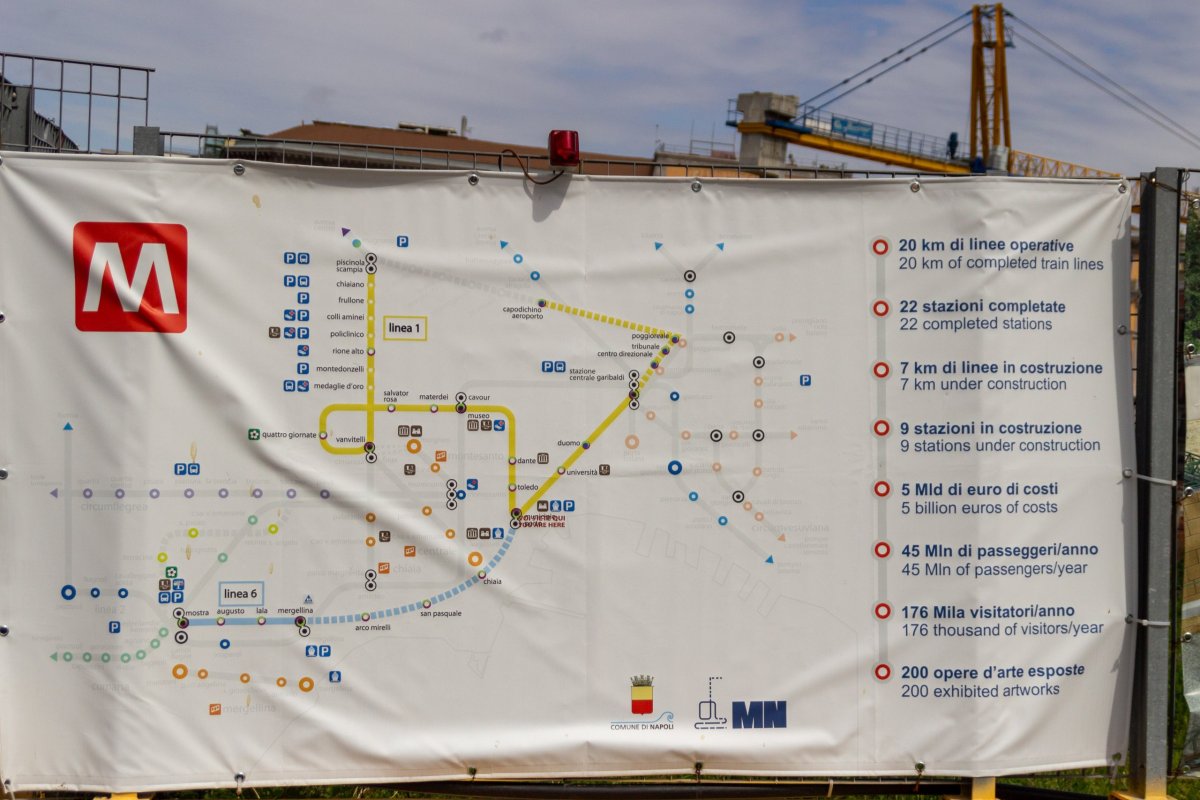 O metru si toho můžete přečíst hodně jinde, takže se omezím jen na osobní postřehy - i pokud nevyužijete čistě k dopravě, myslím, že stojí za vidění některé stanice - např. Toledo mající připomínat akvárium. Jednotlivý lístek je za 1,1 € z automatu - při našem vstupu ze dvou jeden mimo provoz, takže docela fronta. Validace v turniketu, výstup je pak už volný. Intervaly metra jsou oproti Praze docela dlouhé (cca 8-15 minut), takže i mimo špičku jsou soupravy dost narvané. Z billboardu u hradu Castel del Nuovo jsme se dozvěděli, že v budoucnu by mělo okružní metro linky 1 vést i na letiště - podle wiki snad v roce 2024 - i když u Italů nikdy člověk neví - vedle Kolosea se chodí kolem stavební ohrady už pomalu deset let...