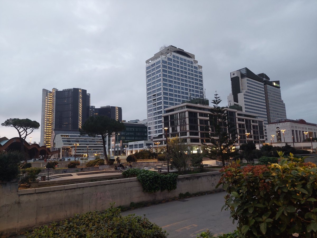 Oproti tomu všemu působí jak z jiného světa (tady spíše města) obchodní čtvrť Centro Direzionale di Napoli nedaleko hlavního nádraží - cíl další z našich podvečerních procházek. Prosklené mnohapatrové kancelářské budovy, občas nějaký ten hotel, upravené nové bytové domy, promenáda s parčíkem uprostřed.