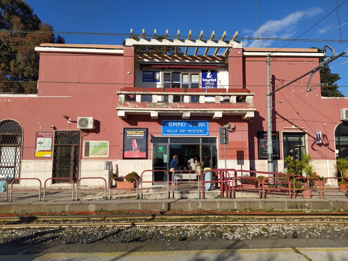 Do Pompejí se z Neapole dá dostat různými způsoby, nejlepší je asi vlak. Odjíždí z podzemní stanice pod Piazza Garibaldi/u hlavního nádraží, provozuje společnost Circumvesuviana, nyní patřící pod EAV. Lístky koupíte na přepážce u vstupu, 2,8€/os, zpáteční sleva není, takže dva lístky za 5,6€/os. Označíte v turniketu, při cestě zpět ve strojku u vstupu na nástupiště.