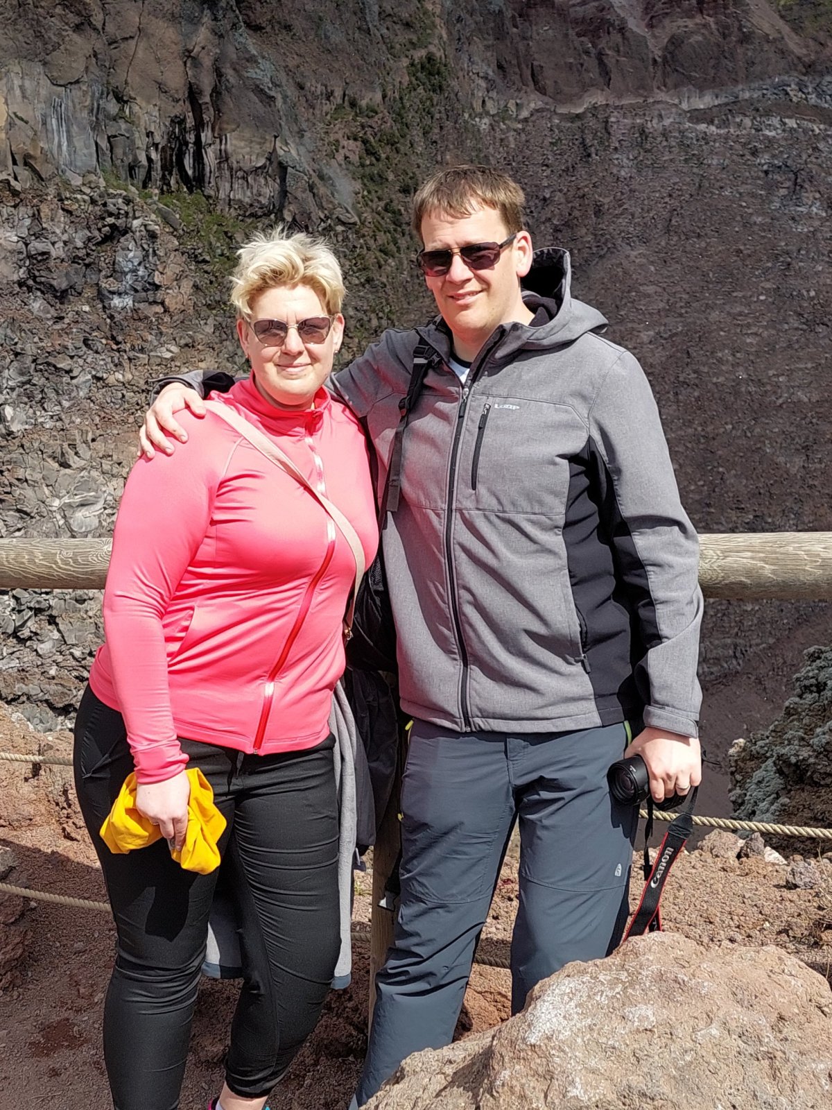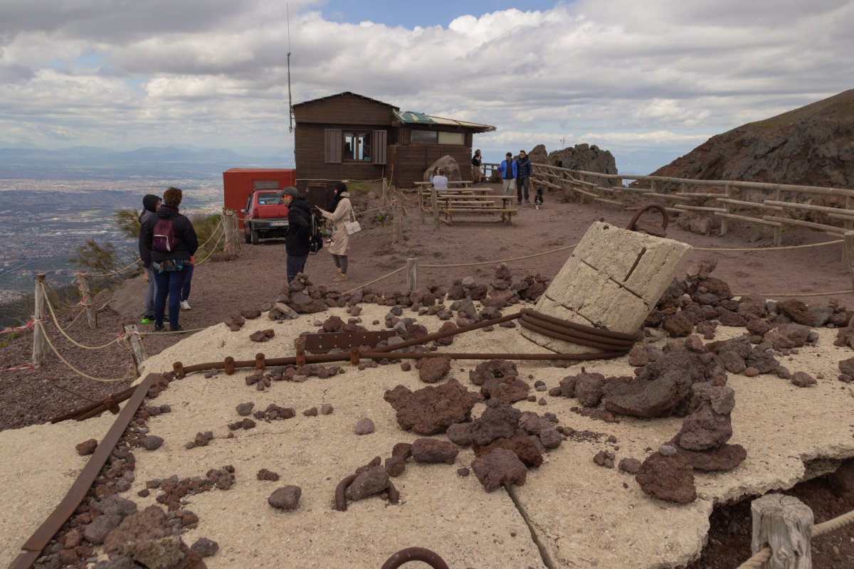 Ještě krátká poznámka k počasí nahoře - dole v Pompejích to bylo na tričko s krátkým rukávem, u kráteru nárazový vítr, mobil hlásil 0 °C a občasné menší přeháňky se sněhem. Myslete na to při výběru oblečení - nahoře jsme potkali několik borců v kraťasech a podle namodralé barvy jim asi moc teplo nebylo.
