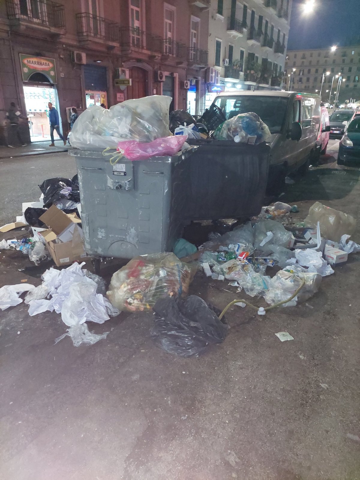 V mnoha ulicích také řekl bych trochu "italská klasika" - odpadky různě se povalující po ulici, přetékající kontejnery/koše. Trochu čistější a upravenější je až např. promenáda mezi oběma hrady (Castel Nuovo a Castel del Oro) kolem moře.