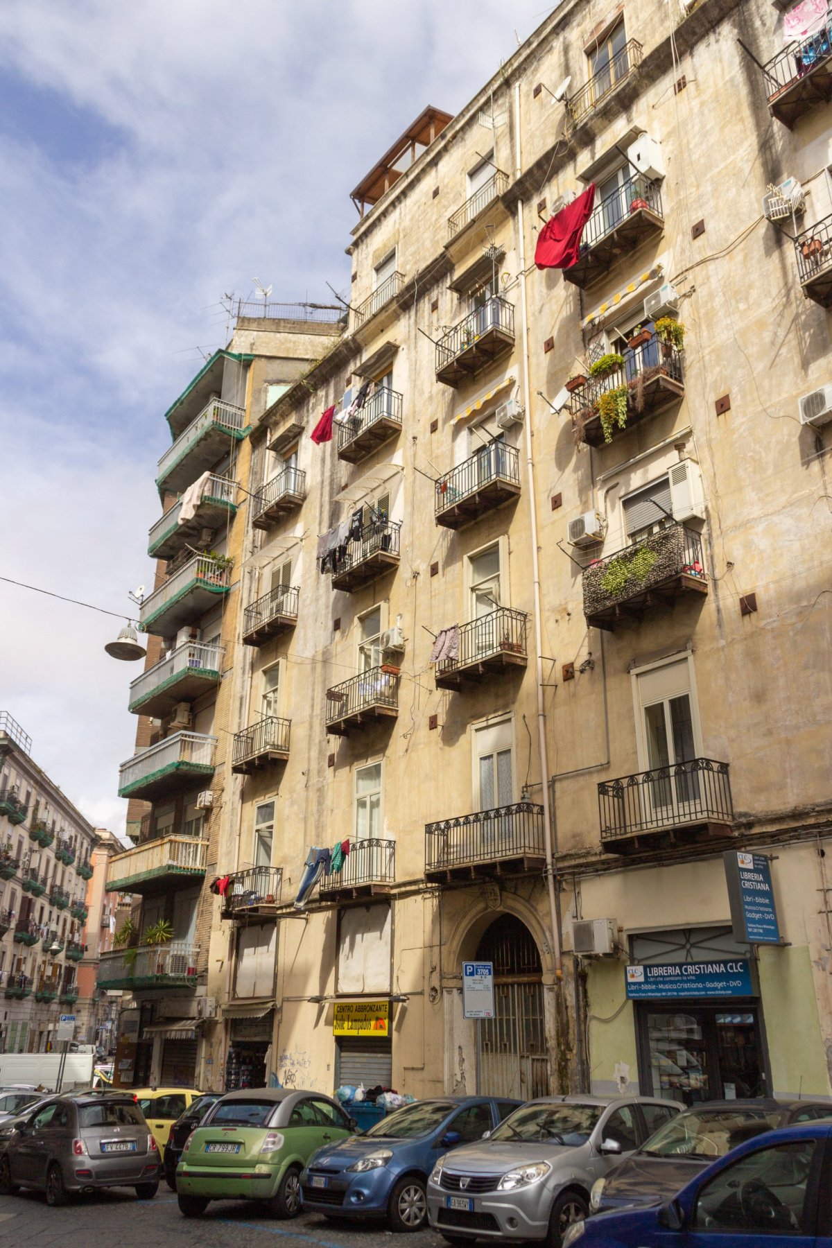 Bydlení jsme měli přes Booking nedaleko v Domus Vesuvio - celkově mohu doporučit, slušný poměr cena/výkon (pro tři cca tisícovka na noc), přátelský hostitel Giovanni, ubytování v pokoji v klasickém činžákovém bytě přestavěném na tři pokoje se samostatnými koupelnami v 6. patře. Snídaně ráno přede dveřmi - různé buchty z místní pekárny, džus. Jen ten odpadkový koš by mohl být větší - ale chápu, odpadky se v Neapoli moc neřeší... Trochu nás prvně zaskočil výtah - nestačilo zaklínadlo, ale 10 centů, aby se rozjel. Běžně centy po kapsách nenosíme. O víkendu jezdil zadarmo, nicméně šest pater se bez kufrů dá.