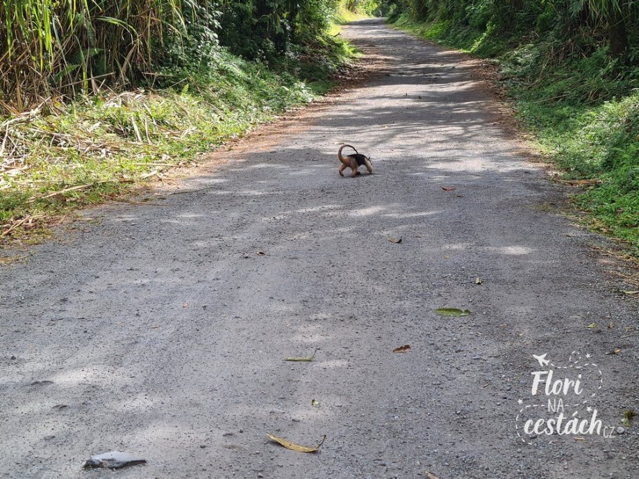 Druhým parkem, který jsme tady navštívili (když už jsme to měli zdarma), byl Národní park Vulkán Arenal – Peninsula area. Tady při procházce po betonové cestě narazíš na vřešťany, kteří skáčí nad tebou v korunách stromů, nosály a prý jsou u jezera i krokodýli, ale na ty jsme štěstí neměli. Cestou je několik vyhlídek na Arenal a jezero. Krása.