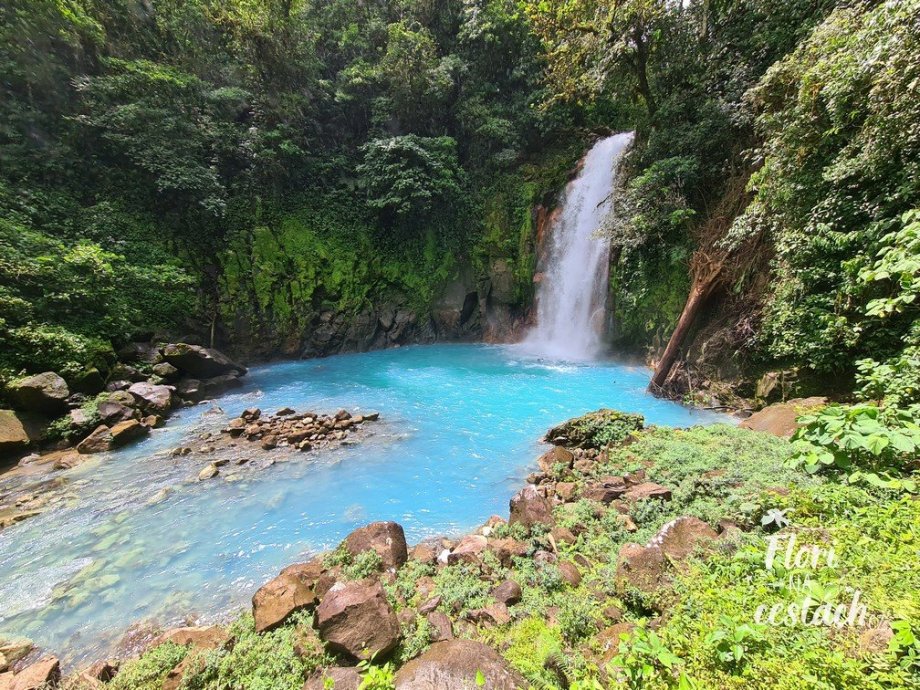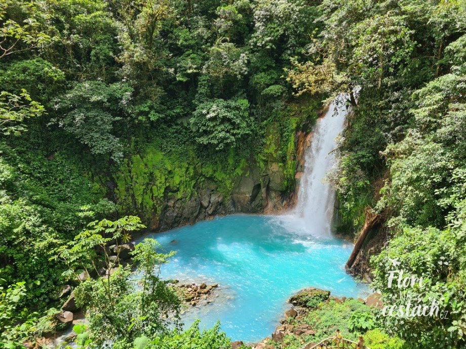Dalším highlightem této oblasti je Národní park vulkán Tenorio s úžasně azurově modrou řekou Rio Celeste (přibližně 45 km od ubytování). Je do další z hodně navštěvovaných parků. Po zaplacení vstupného jdeš po betonové cestě, která se pak změní v lesní cestu. První zastávka je u vodopádu. K němu vede hromada schodů dolů a pak zase nahoru. Jdeš pomalu, protože se na každém druhém schodu se někdo fotí s vodopádem (ty samozřejmě taky). Takové barvy jen tak nevidíš. Když přijdeš dolů, tak se ti pod vodopádem podaří udělat i fotky bez lidí. Chce to jen chvilku počkat a vystihnout správný úhel.