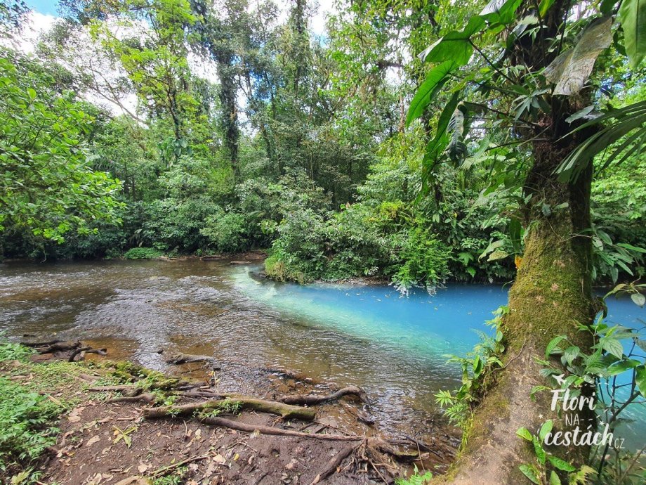 Trasa končí v místě zvaném Tenidero. Je to bod, kde vzniká zvláštní barva řeky Rio Celeste. Je to soutok dvou řek Rio Buenavista a Quebrada Agria, které ale samy o sobě nejsou nijak zbarvené. Změna pH v místě míšení zvyšuje velikost částic minerálu, který je přítomný v Rio Buenavista. Jednoduše řečeno, tento minerál se pak ukládá na krajích řeky a díky lomu světla vzniká tento optický jev a barva řeky. Takže azurovou vodu si domů neodvezeš.