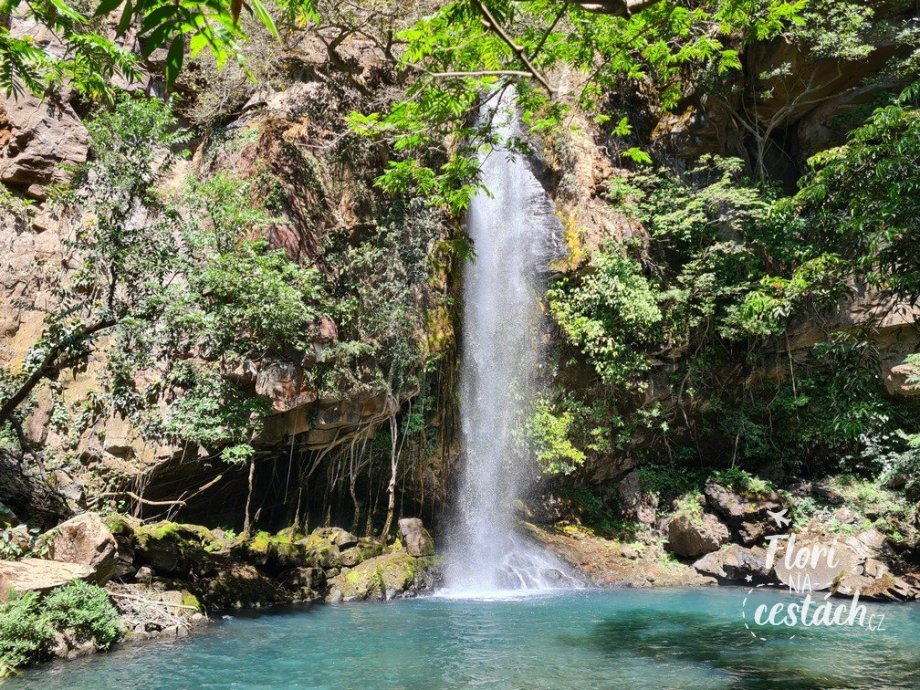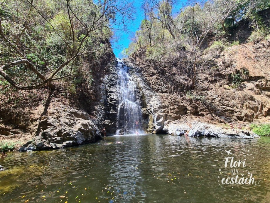 I když i na poloostrově Nicoya hromada míst k vidění, vzhledem k dlouhým přejezdům jsme se už ze Santa Teresy podívali jen k vodopádům Montezuma. Zhruba 16 km, půl hodiny cesty. Cesta k vodopádům (které jsou zdarma) pak vede částečně po kamenech v korytě řeky, částečně po jejích březích. Montezuma je kaskáda tří vodopádů. První, na který cestou narazíš, je spodní a je nejvyšší. Dosahuje 40 metrů. Prostřední vodopád je tak trochu ukrytý a je vysoký 12 metrů a nejvýše položený má 5 metrů. Ke spodnímu vodopádu přijdeš v pohodě, k hornímu máš dvě možnosti. My vyzkoušeli obě. Nahoru samozřejmě tou těžší, kdy lezeš téměř kolmou stěnu, přidržuješ se stromů, kořenů i natažených lan. Není to nebezpečné, jen je potřeba se v některých místech opravdu držet.