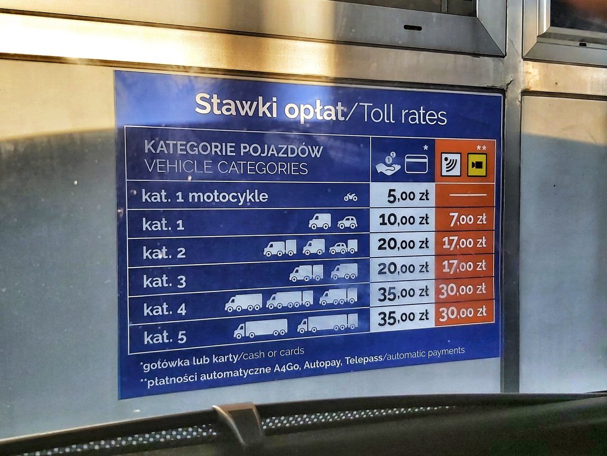 Co se týká cestování autem v Polsku - jízda na dálnici je zde opravdu adrenalin. Polští řidiči - to je kapitola sama pro sebe. Nejednou jsme brzdili, což je na dálnici opravdu zážitek… Mýtné jsme platili tuším 3x, ale vždy se jednalo o drobné položky - 5 - 10 zlotých.