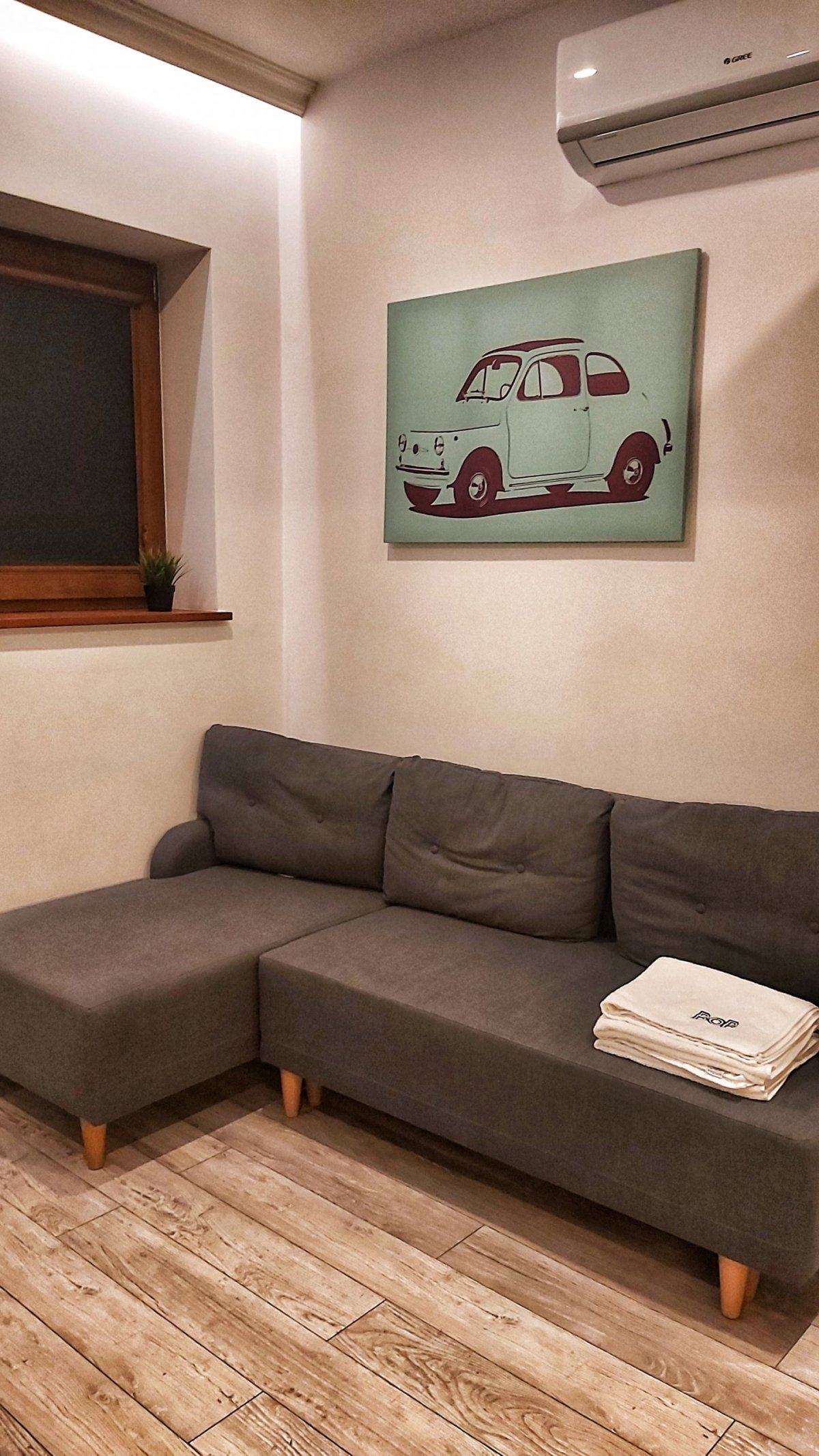 Ubytování jsme měli naprosto famózní - vřele doporučuji. Malý byteček (apartmán) s jednou ložnicí (Martin a Andrejka) a obývákem s rozkládací pohovkou (dobrovolně já... lednice hned u postele - to se neodmítá že 🍸🙏 ). Kuchyň, koupelna, pračka, wifi a hlavně - vyhrazené parkovací stání. Apartmán byl dokonale čistý, krásné prostředí kolem, 400 metrů od bytu Žabka (místní top sámoška), cca 20 minut chůze od historického centra. Pojme až 4 osoby a to za cenu 2 400 Kč/ 4 osoby, 2 noci. My jsme nakonec jeli 3, takže nás ubytování vyšlo na 800 Kč/osoba/2 noci. Doporučuji všema deseti!