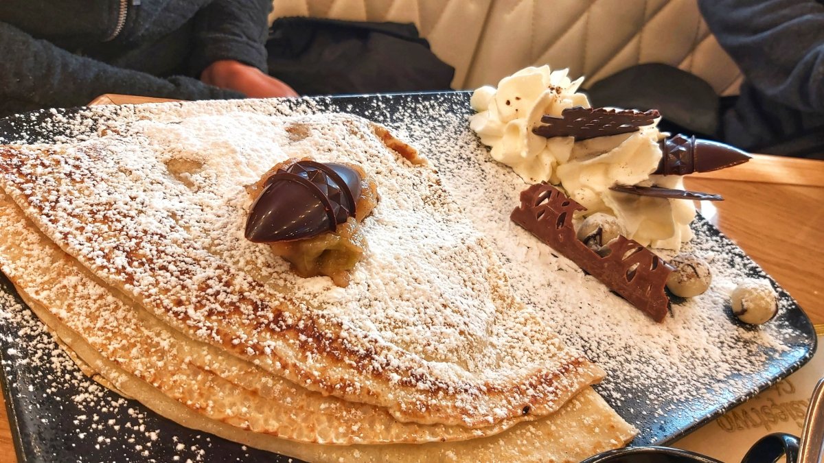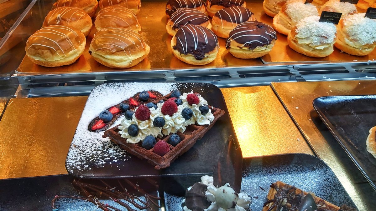 Jo a hned vedle višňového baru je restaurace, kde jsme byli na sobotní “dekontaminační” snídani. Mají tu i milion dezertů, zmrzlinu, čokoládu, palačinky a jiné sladkosti. Já si dala snídani na slaný způsob a musím říct, že místní míchaná vajíčka se slaninou, výborně ochucený zeleninový salát, to vše za necelou stokorunu, stojí rozhodně za zmínku.