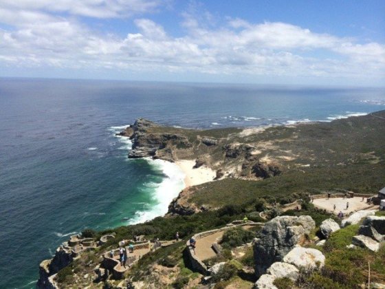 Hodně lidí si myslí, že Mys Dobré naděje je nejjižnějším bodem, ale není tomu tak. Je jím Střelkový mys, asi 300 kilometrů na východ od Kapského města. I když nás lákalo, být na místě, kde se Atlantik prolíná s Indickým oceánem, bylo to přece jen dost daleko na jednodenní výlet… Takže jsme stáli u majáku a kochali se výhledem na tu krásu a dolů už šli po svých. Všude bylo ticho, ani tam nebylo moc lidí, jen šumělo moře, kolem skály a kamení.