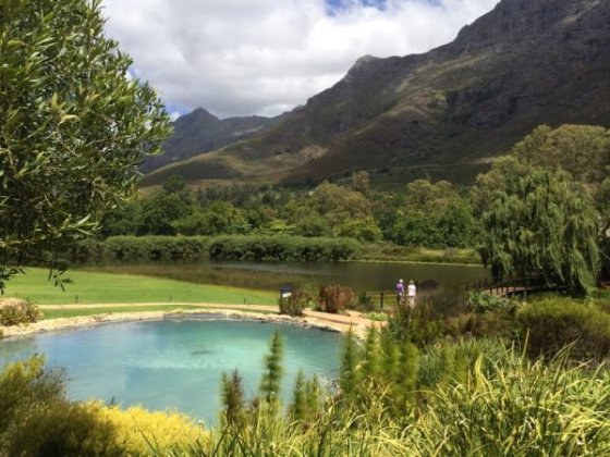 Odpoledne jsme pokračovali směr Franschhoek, do další vinařské oblasti. Cestou jsme se stavili v Graf diamond reserve. Nádherný areál s luxusním hotelem, lázněmi, vinicí a také prodejnou diamantů, do které jsem se chtěla podívat. Takže do toho luxusu jsme vešli my, dva upocení turisti v kraťasech a začali obcházet vitríny. Mládenec ve skvěle padnoucím obleku se ke mně přitočil a zeptal se mě, zda se mi líbí ty vystavené náušnice. Řekla jsem, že ano, že dvoukarátové šatonky už „stojí za to“. Chlapec se zeptal, proč to odhaduju zrovna na 2 karáty… Odpověděla jsem, že bych to tak tipovala: 2 ct, F až H barva a skvělá čistota (trochu jsem to riskla). Prodavač se shovívavě usmál, pak teda sáhl do zásuvky, vytáhl certifikát a četl: 2,01 karát, color F, čistota VVS1. Zbledl, zrudl a začal koktat. Rozesmála jsem se a začali jsme se konečně bavit, o mojí bývalé práci, o korunce Miss Universe, dala jsem mu vizitku, aby se podíval na naše stránky, byla to nakonec docela zábava. Měli tam krásné žluté diamanty, jen o malinko dražší, než máme my, pár intense, vivid žádné.