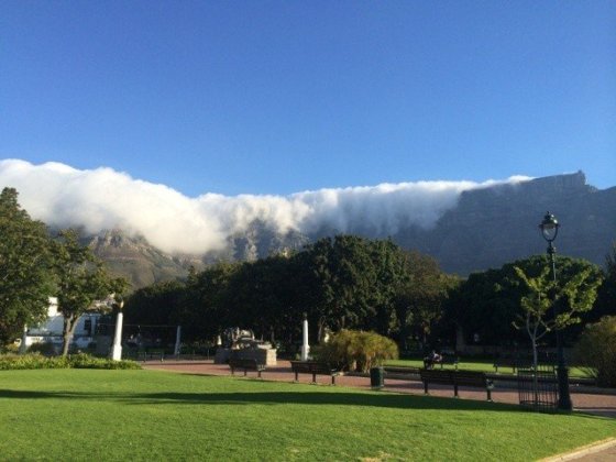 Vrátili jsme se do Upperbloemu, odpočinuli si a večer vyrazili do čtvrti Gardens. Katrin měla pravdu, že v sobotu odpoledne chodí městem jen bezdomovci, bylo to docela nepříjemné. Ale Gardens je krásná čtvrť plná muzeí, je tam budova parlamentu, krásný park, potkali jsme dokonce svatbu, která se tam byla fotit. Co večeře? To byl docela problém, prošli jsme kus Long Street, kde byly jen hlučné bary a pivnice a tam se nám nechtělo. Začalo zase foukat, takže jsme vzali zavděk bistrem u Green marketu a bylo o dost hrozný. Smažené kalamáry a hranolky byly tak mastné a strašně slané, že mi z toho pak bylo docela zle. Po setmění jsme se vrátili na pokoj a skoro do půlnoci si četli.