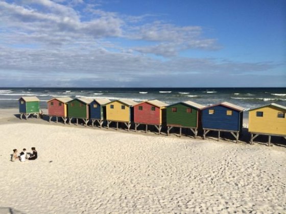 Celodenní výlet jsme zakončili v Muizenbergu. To je poměrně známé rekreační letovisko s hezkou pláží a s typickými barevnými chatkami na kůlech. Letovisko si pochvalují zejména sportovci, na moři se proháněly desítky kiteboardistů a ty barevné plachty proti zapadajícímu slunci, to byla nádhera. Voda v moři byla sakra studená, v tom se přece nikdo nemůže koupat? A to je tahle oblast False bay prý celkem teplá! Snažili jsme se být na pokoji ještě před setměním, přece jen tím autem po tmě, neznáme to tady… Podařilo se a večeři jsme si dali spíš symbolickou, sýrovou mísu a bagetu na terase před pokojem. Poznatek č. 3: když se setmí, jde se spát. Švagruša zapůjčila severskou literaturu, takže jsme si před spaním četli. Na televizi se koukat nedalo, 5 programů, všechny nepoužitelné, asi jako u nás. Jediné, z čeho jsem byla nadšená, byl přenos udílení Oskarů, takže jsem si těch pět hodin v noci náramně užila.