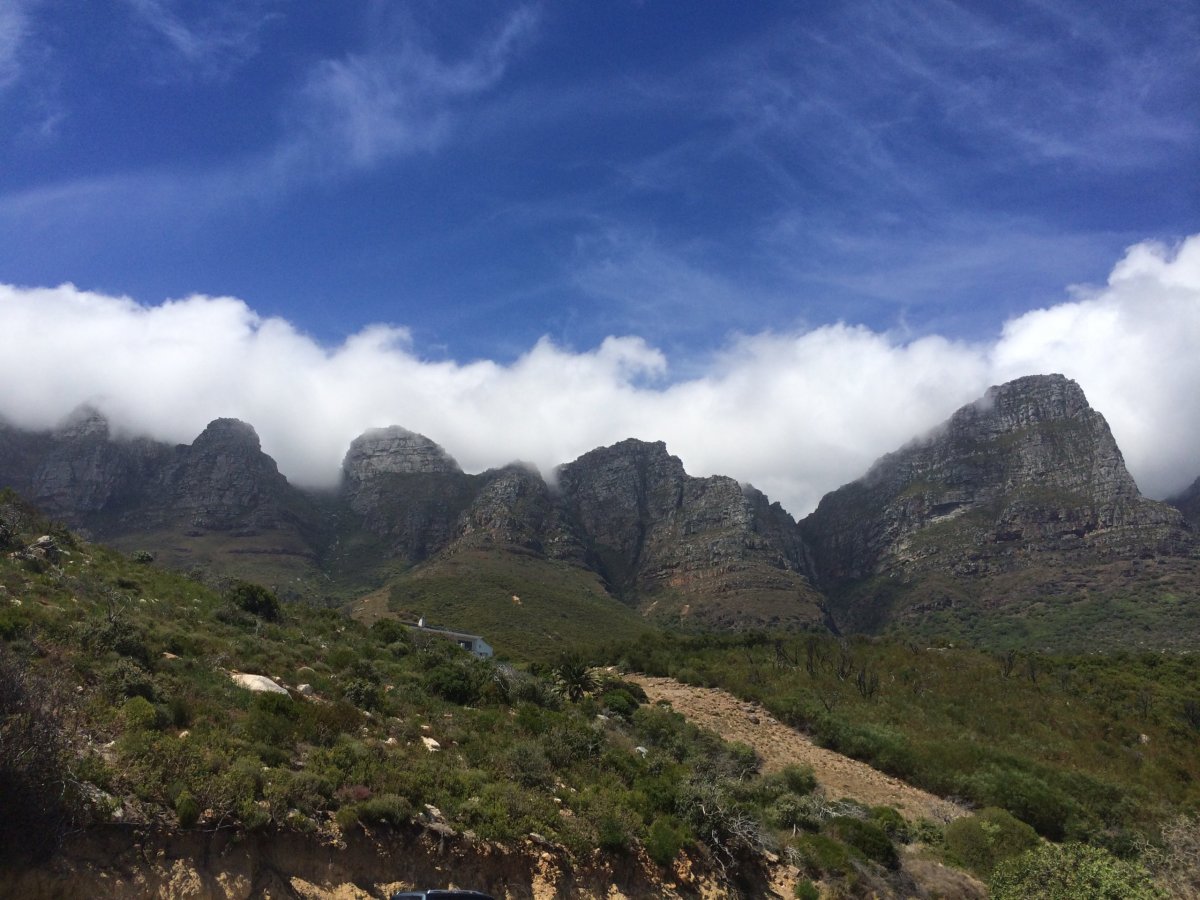 Nedělní ráno byl tak silný vítr, ani jsme nevlezli do bazénu a přes Stolovou horu se valila mračna. Měli jsme štěstí, že jsme na ní byli, když bylo hezky a teplota tak akorát. Rozloučili jsme se s Katrin a přesunuli se na naše poslední místo, do luxusního přímořského letoviska Camps bay. Cesta byla jednoduchá, asi i proto, že jsme měli výjimečně adresu. Přijeli jsme už před polednem a po deseti minutách zvonění nám přišla otevřít mohutná černoška, která právě připravovala náš pokoj. Byla jsem na něj zvědavá, protože na Bookingu jsou často zkreslující informace, fotky jednoho pokoje patří jinému pokoji apod. A já jsem ve čtyřpokojovém domě nad mořem vybrala pokoj se samostatným vchodem a vyhlídkou, tak uvidíme.
