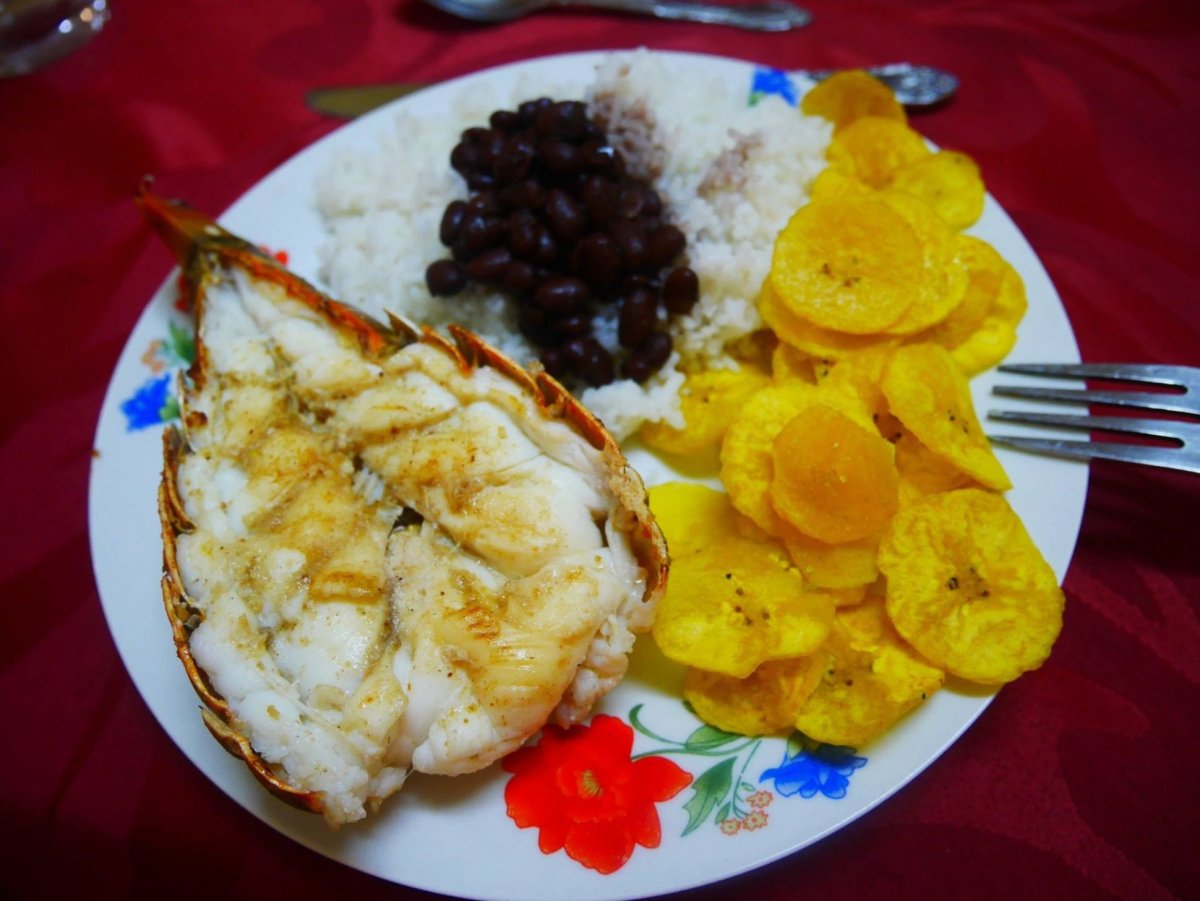 Na Kubě se podává ke všemu rýže a smažené banány (mňam :)). Maso dělají téměř všechno, ale nejela jsem přes půlku světa, abych nezkusila něco nového. Langusta byla luxusní všude, kde jsme ji ochutnalii (y)