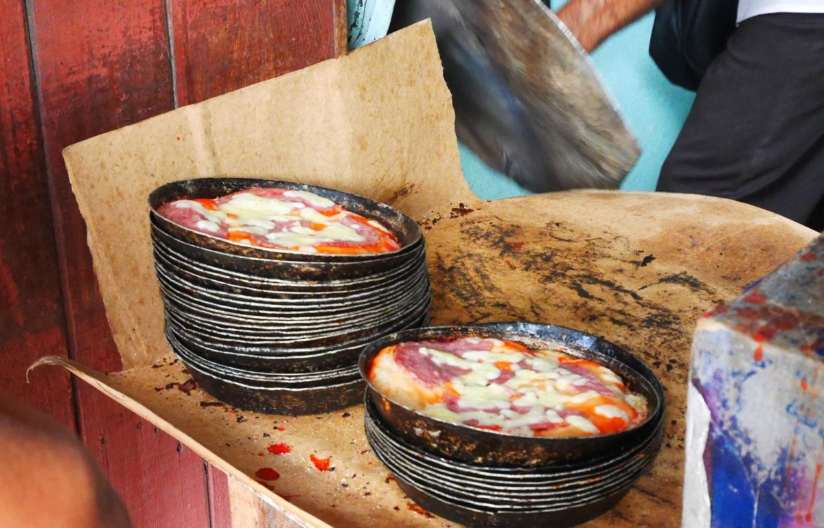 Místní pizza... Tak to je ona. Musím říct, že nic hnusnějšího jsem v životě nejedla, a i když jsem si ji kvůli hladu a nedostupnosti čehokoli jiného musela dát - tohle je fakt hnus hnus a cena cca 12 Kč je AŽ MOC!!