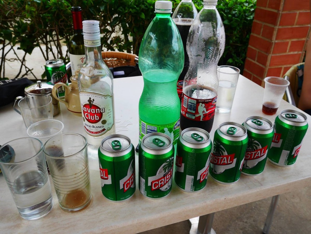 Pitný reřim - úplně jiný level :DRum je naprosto všude, jeho cena je úsměvná. Láhev bílé Havany za 3,8 euro, láhev vody za 1 euro, láhev koly (1,5l) za 1,5 eura, pivo plech 1 - 2 eura.