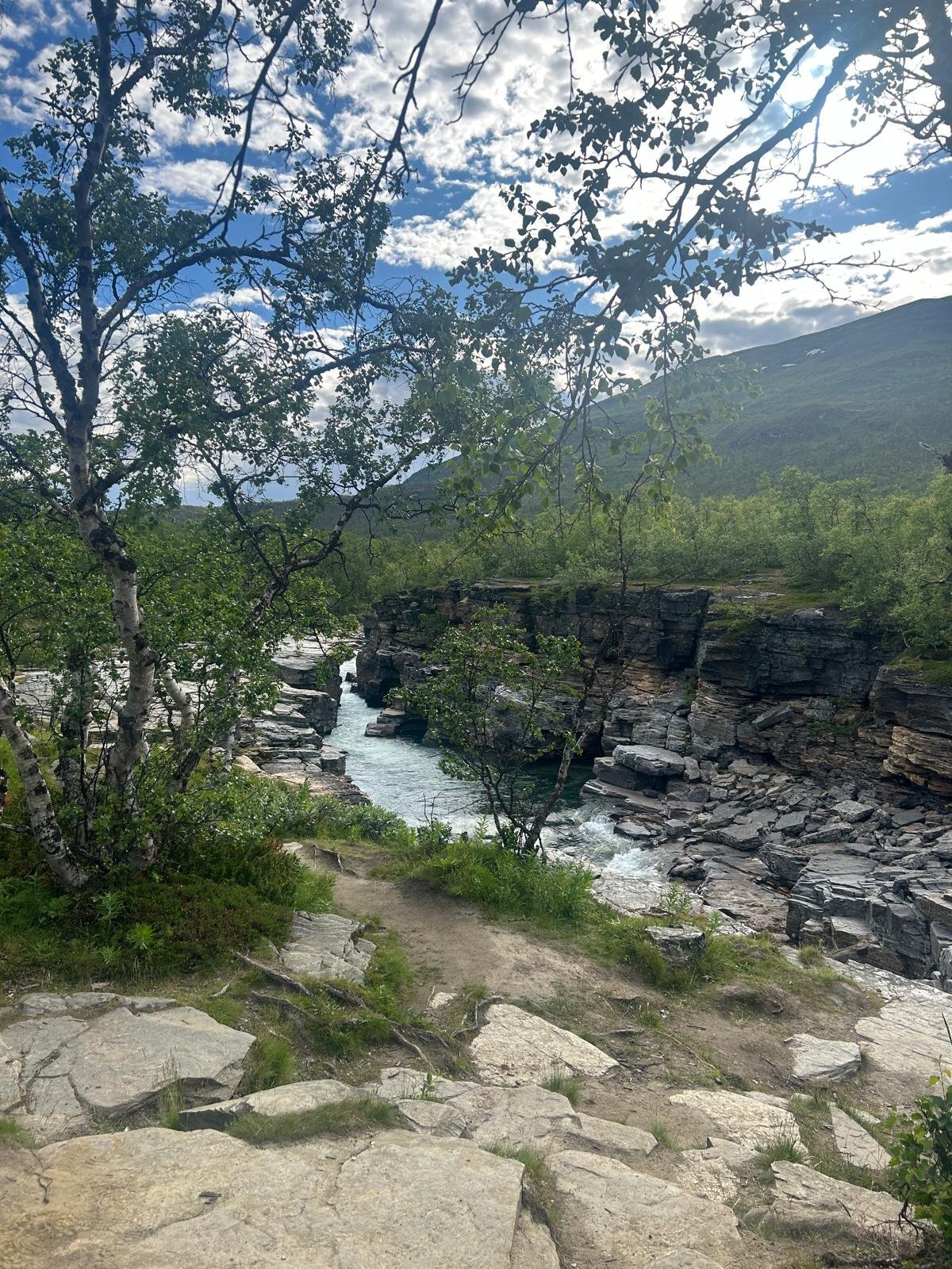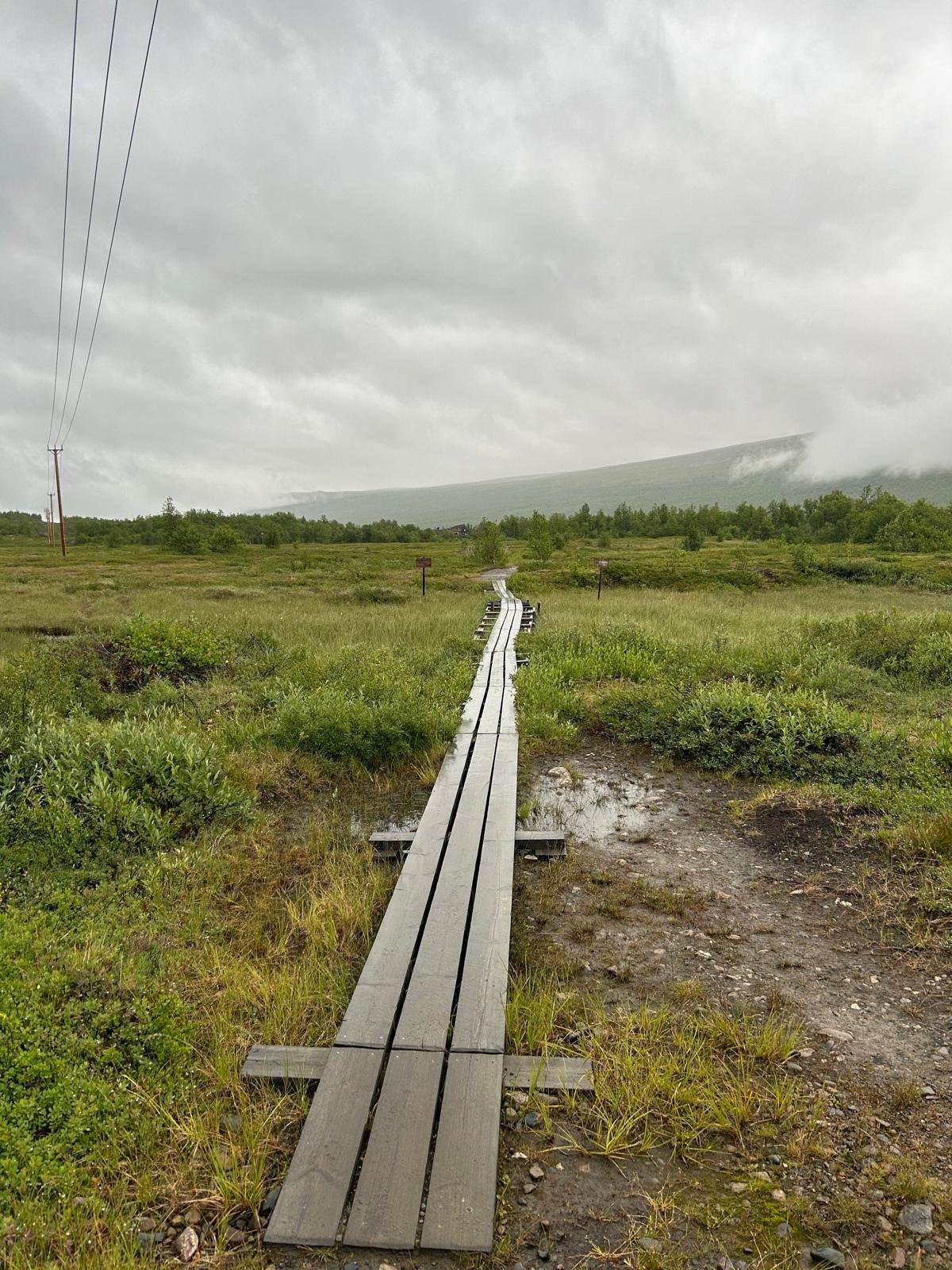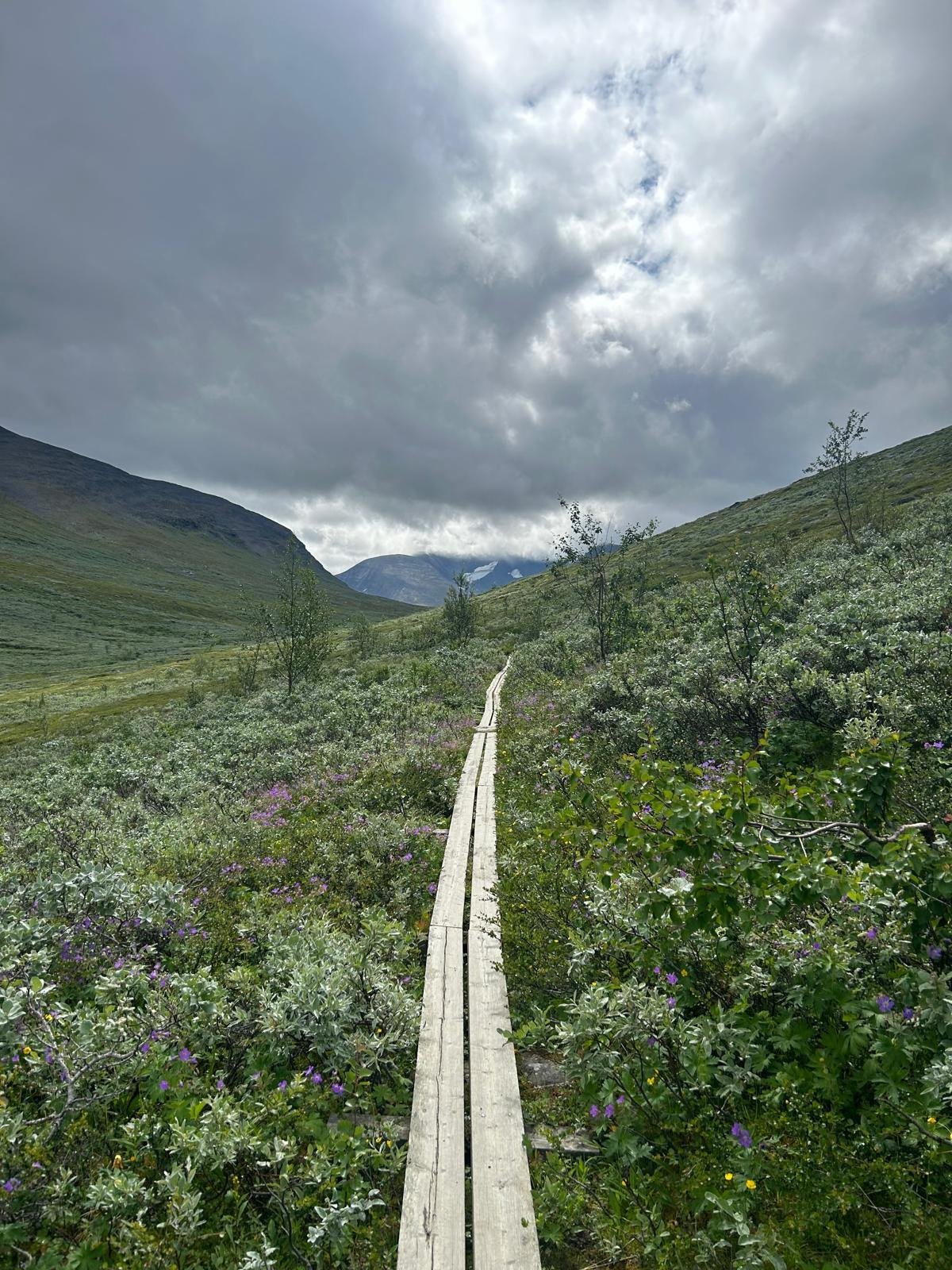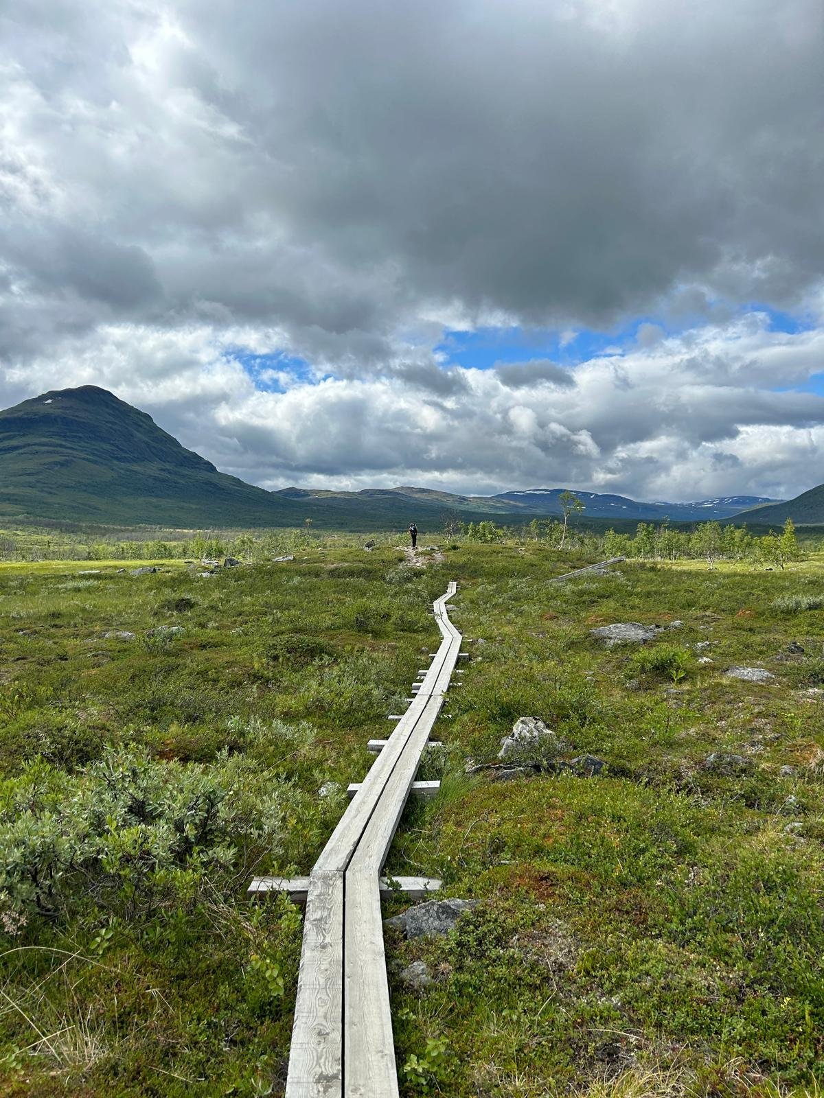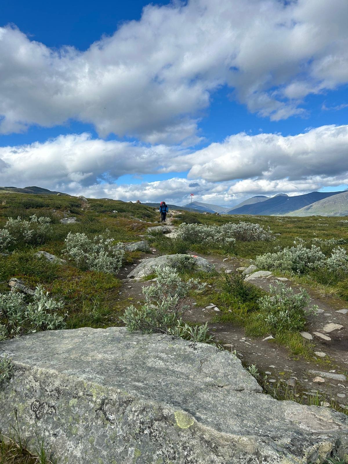 Kolem 17:00 jsme vystoupili v Abisku, kdy jsme před sebou měli zhruba 15 kilometrovou trasu do prvního tábora. Jelikož jsme procházeli národním parkem, kde se nesmí stanovat volně, chtěli jsme se dostat k první chatě. Svítilo nám sluníčko, a protože to nikdy na severu v létě nezapadá, nemuseli jsme ani pospíchat. Po 500 metrech jsme ztratili signál, který jsme znovu chytili až poslední den cesty. Zůstali jsme téměř sami, bez připojení, s batohy, jídlem na 6 dní a se spoustou komárů. Zatím jsme ale měli krásné počasí, které nám mělo snad vynahradit předchozích 72 hodin.