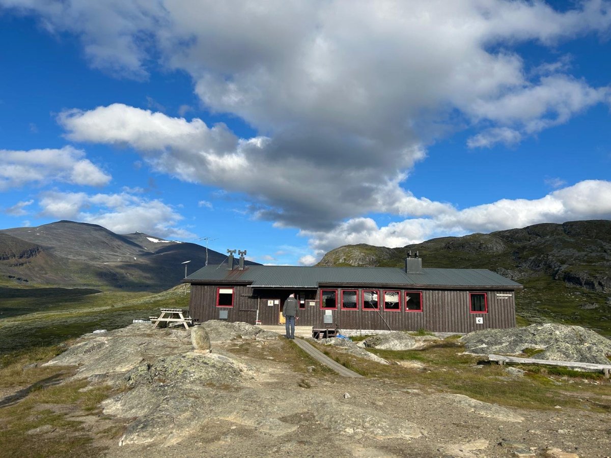 Celý den nám mrholilo, ale aspoň jsme konečně viděli několik stád sobů, která se volně pásla na velikých pláních. V sedle, kde byla postavená chatička, jsme se schovali před již silnějším deštěm. A potkali jsme tam i slečnu z Česka, která šla opačným směrem.