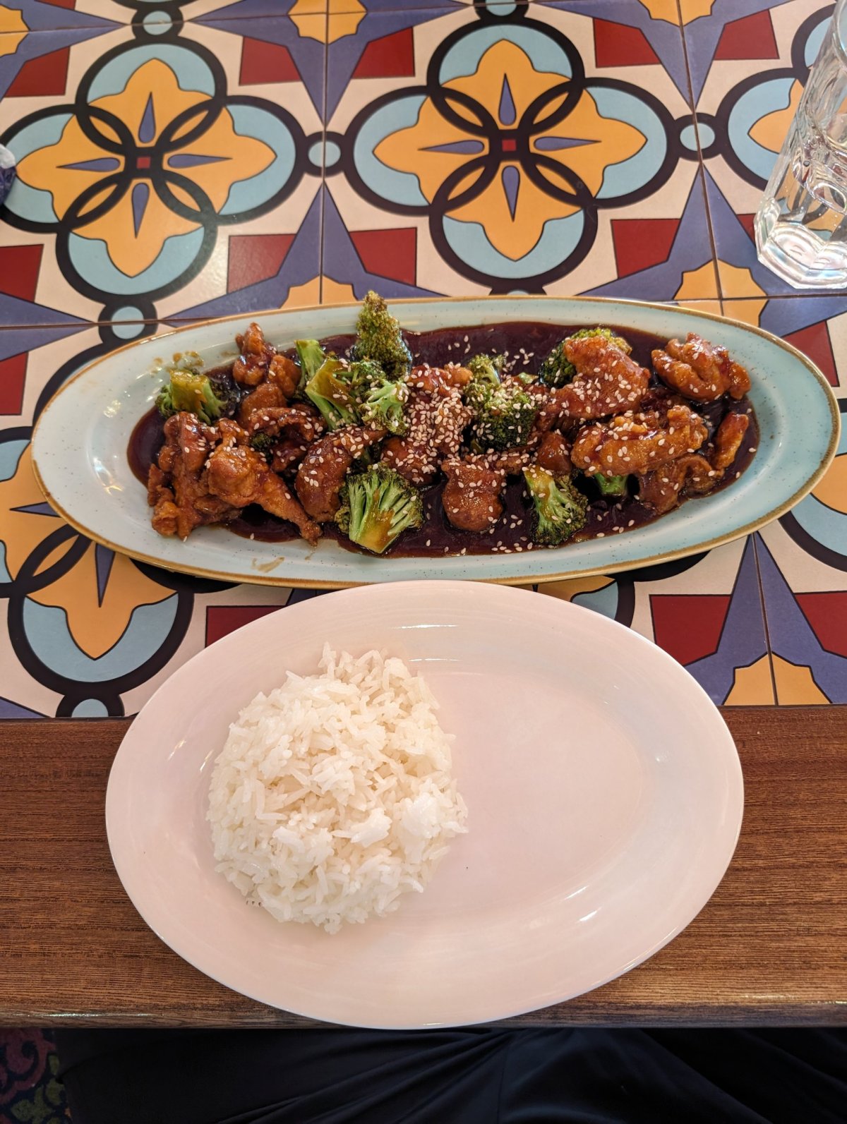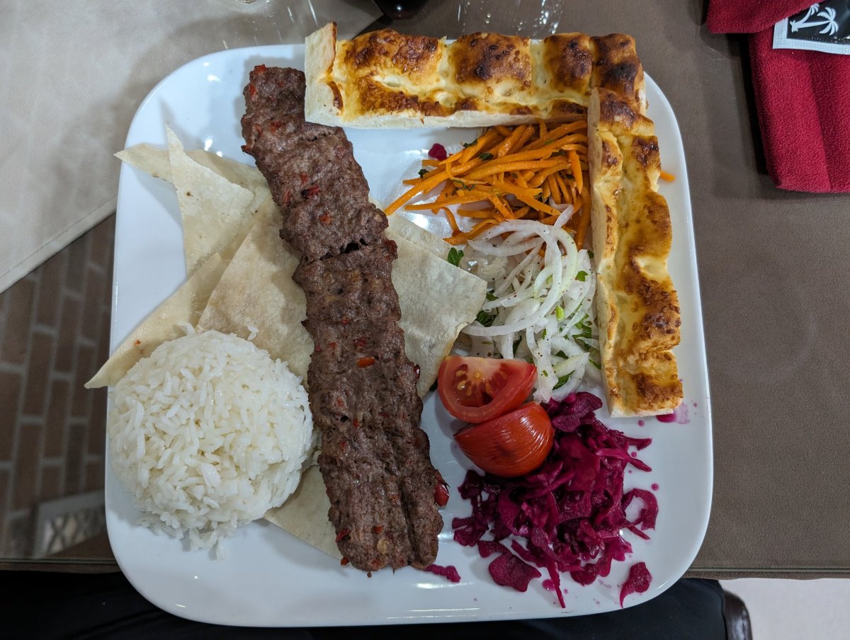 K večeři jsem udělal špatnou volbu. Turecká restaurace Kervansaray. Na jídlo jsem dlouho čekal, vše bylo studené (včetně masa), malá porce, vyšší cena 450 SOM.