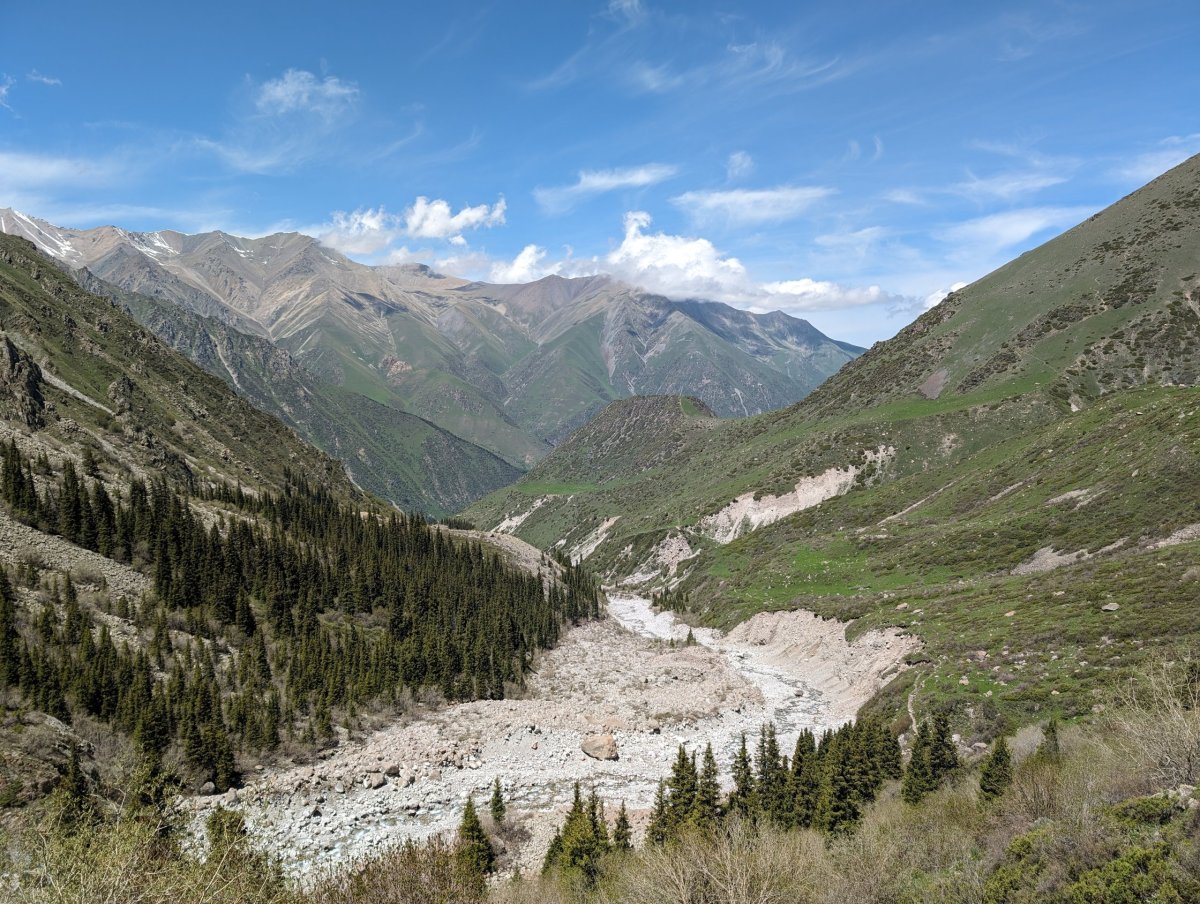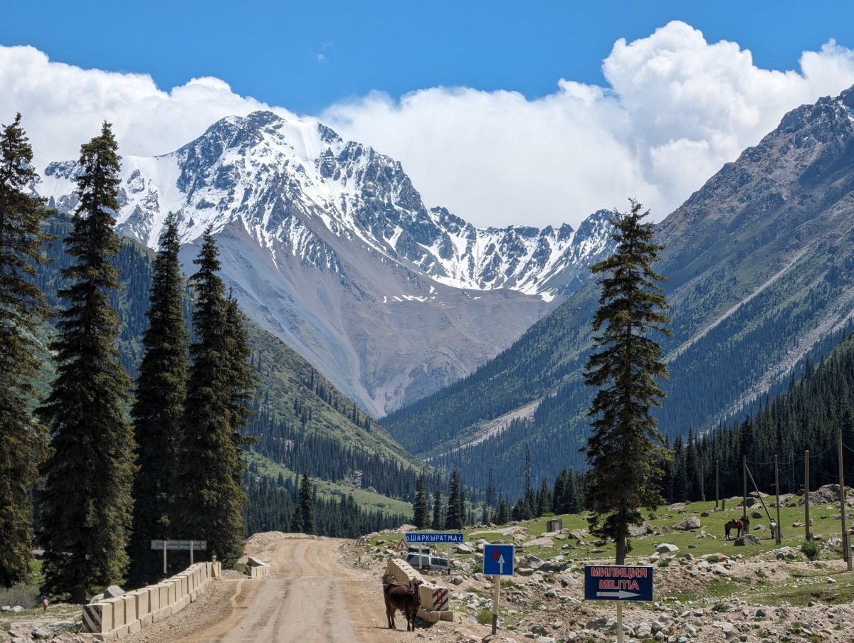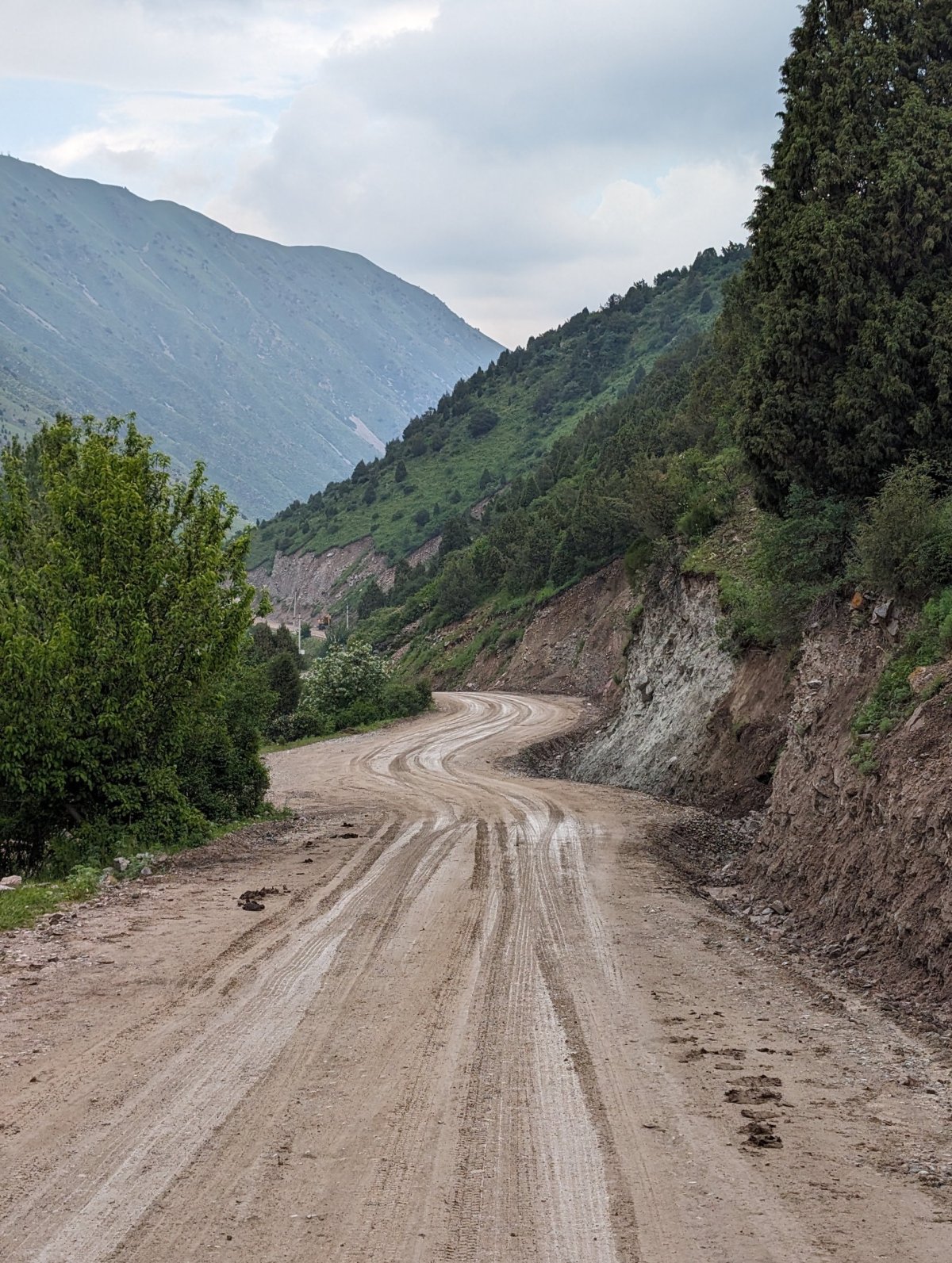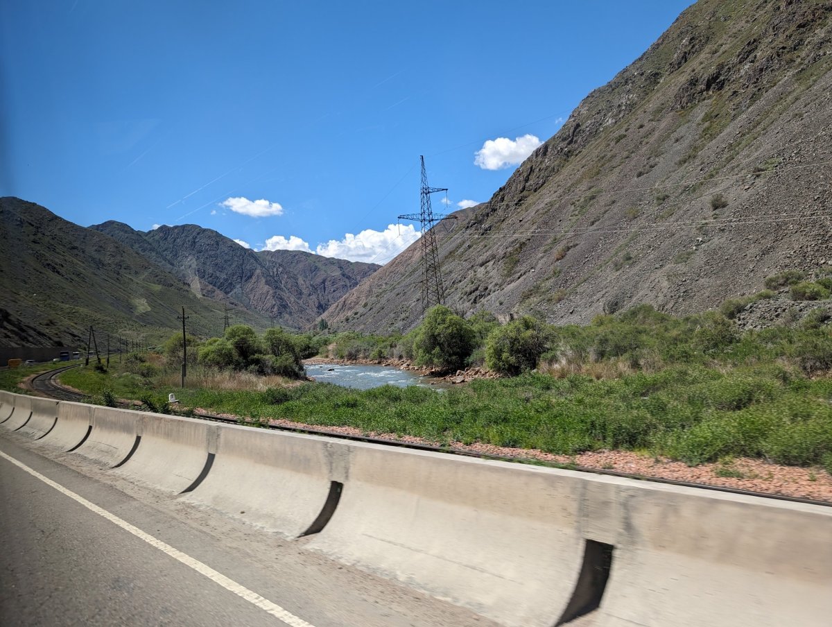 Ráno v 7:30 odjezd pokořit At Zahalyo (přes kopec od Ala Archa) v údolí řeky Alamedin. Jízda trvala hodinu a 20 minut, cena 700 SOM. Řidiči se nechtělo jet až na poslední parkoviště. Když jsem mu řekl, že to mám objednané až tam a ukázal v aplikaci, tak poslušně frčel dál.