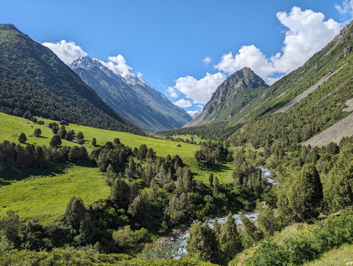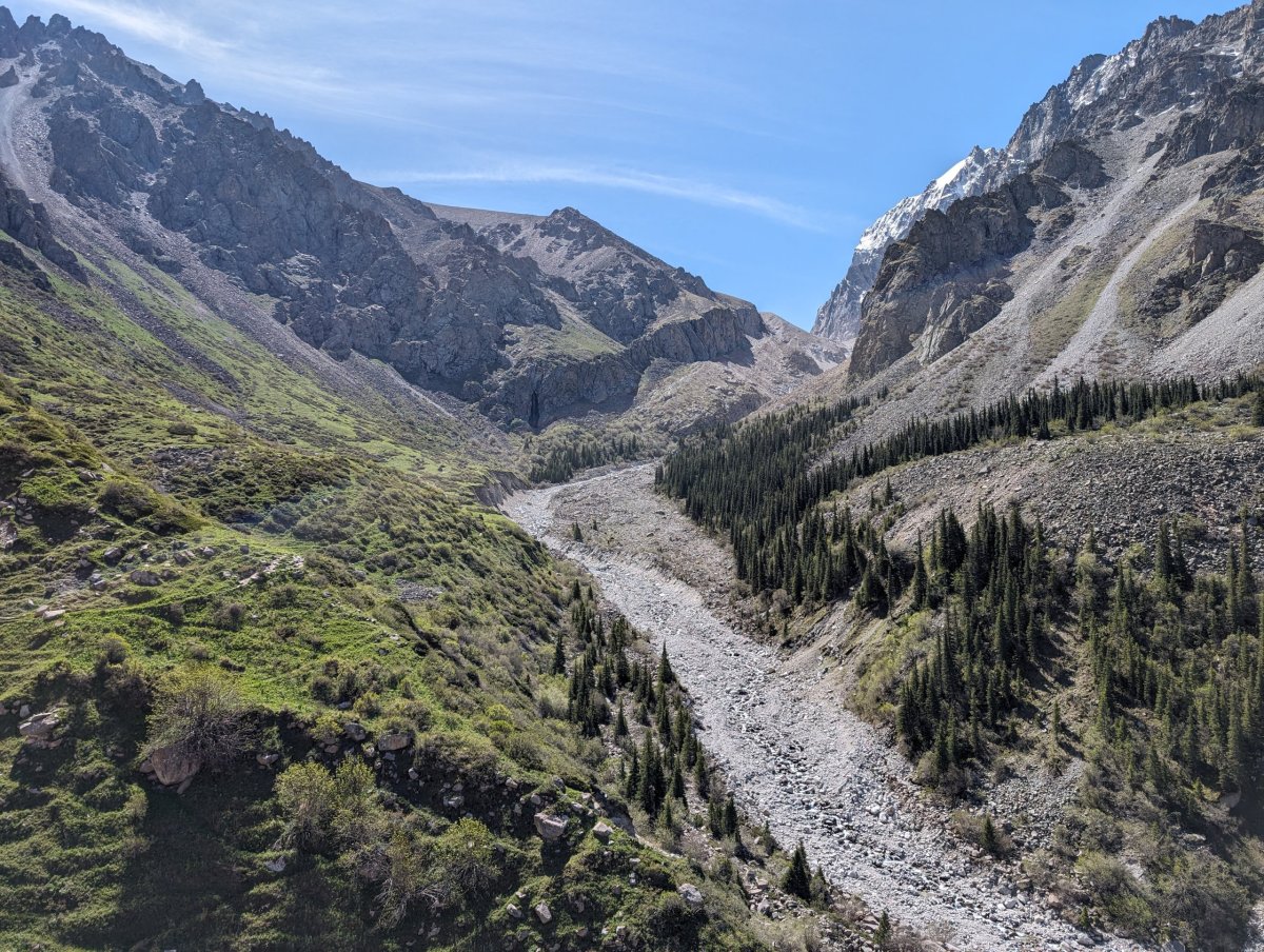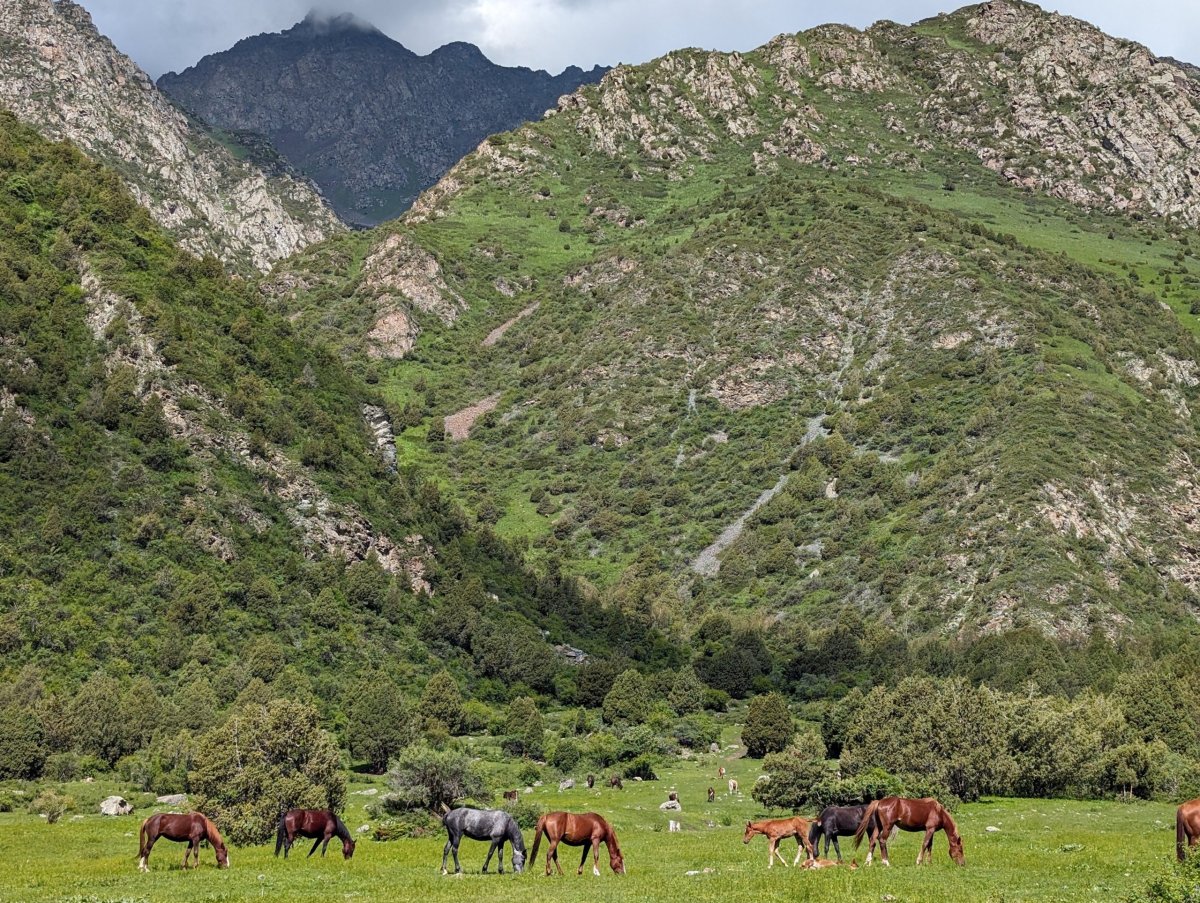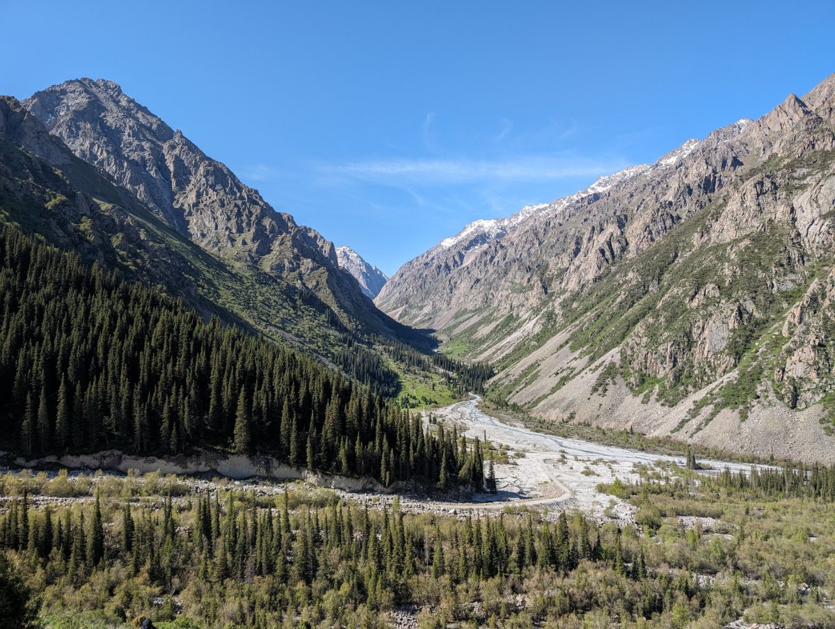 Ráno v 7:30 odjezd pokořit At Zahalyo (přes kopec od Ala Archa) v údolí řeky Alamedin. Jízda trvala hodinu a 20 minut, cena 700 SOM. Řidiči se nechtělo jet až na poslední parkoviště. Když jsem mu řekl, že to mám objednané až tam a ukázal v aplikaci, tak poslušně frčel dál.