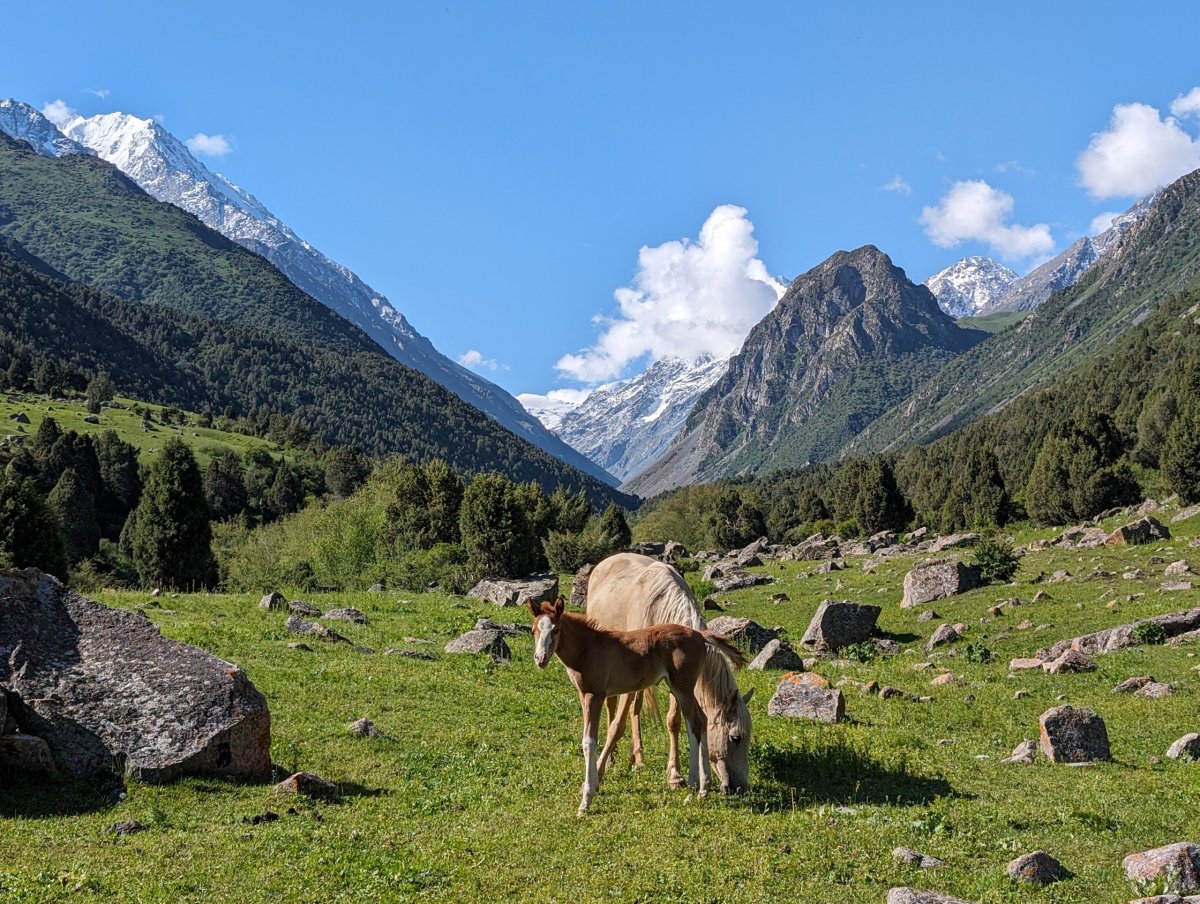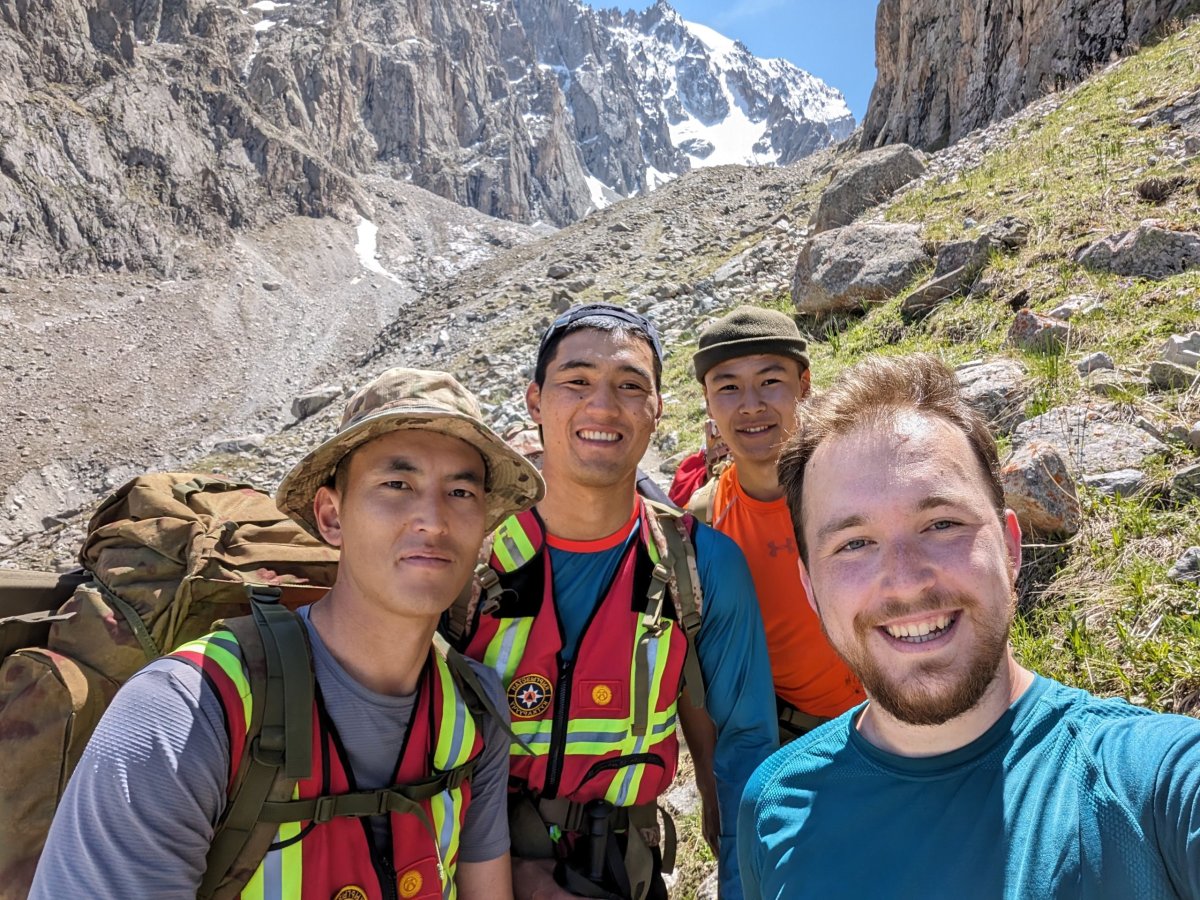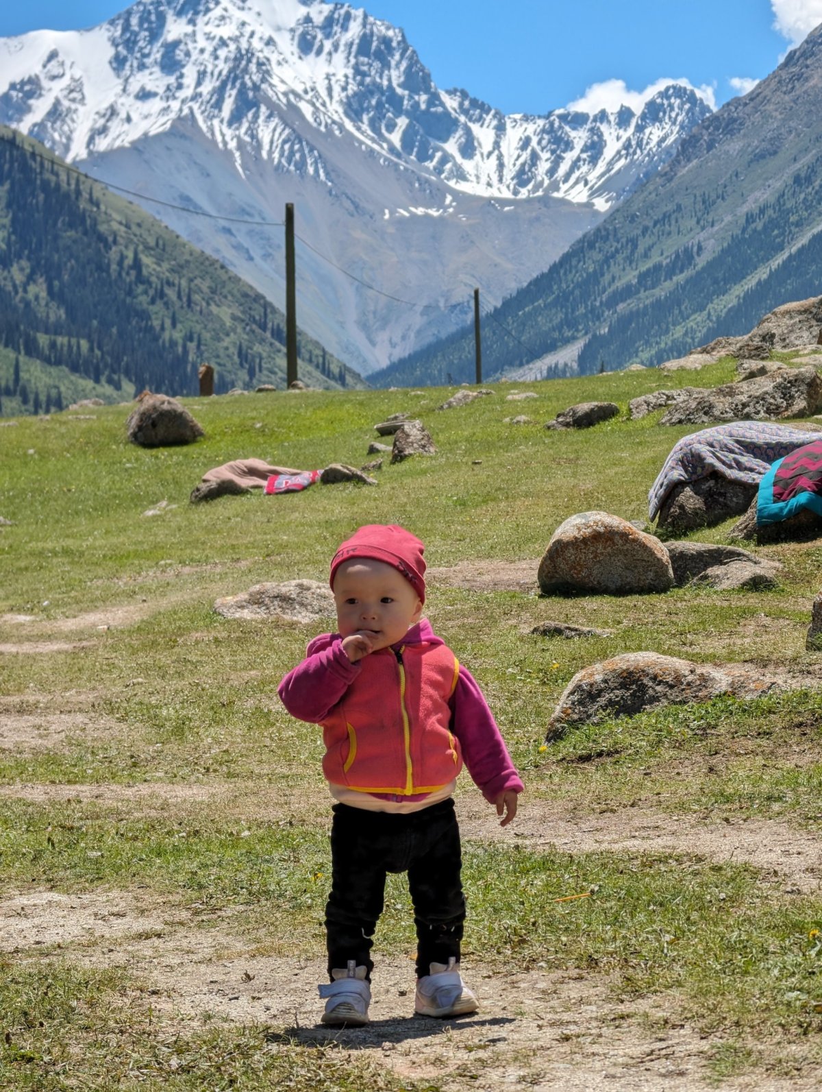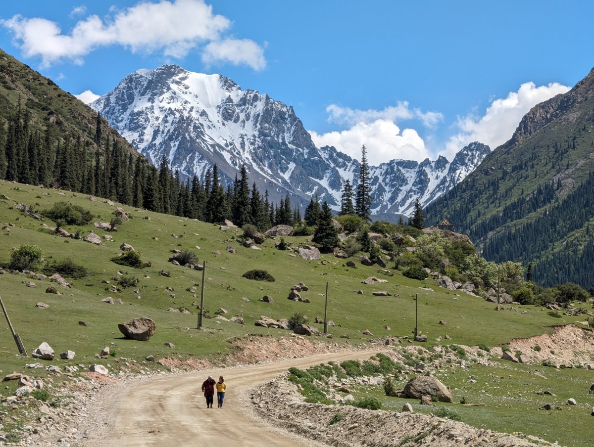 Cesta byla vyšlapaná, měkká a pohodlná. Lidí jak šafránu. Cestou mě předešli Kyrgyzští záchranáři, kteří měli v horách dvoudenní cvičení. Dali jsme se do řeči, udělí společné fotky a vyměnily instagram. Angličtinou si však nepokecáte. Lidé jsou tu povětšinou velice přátelští a usměvaví.
