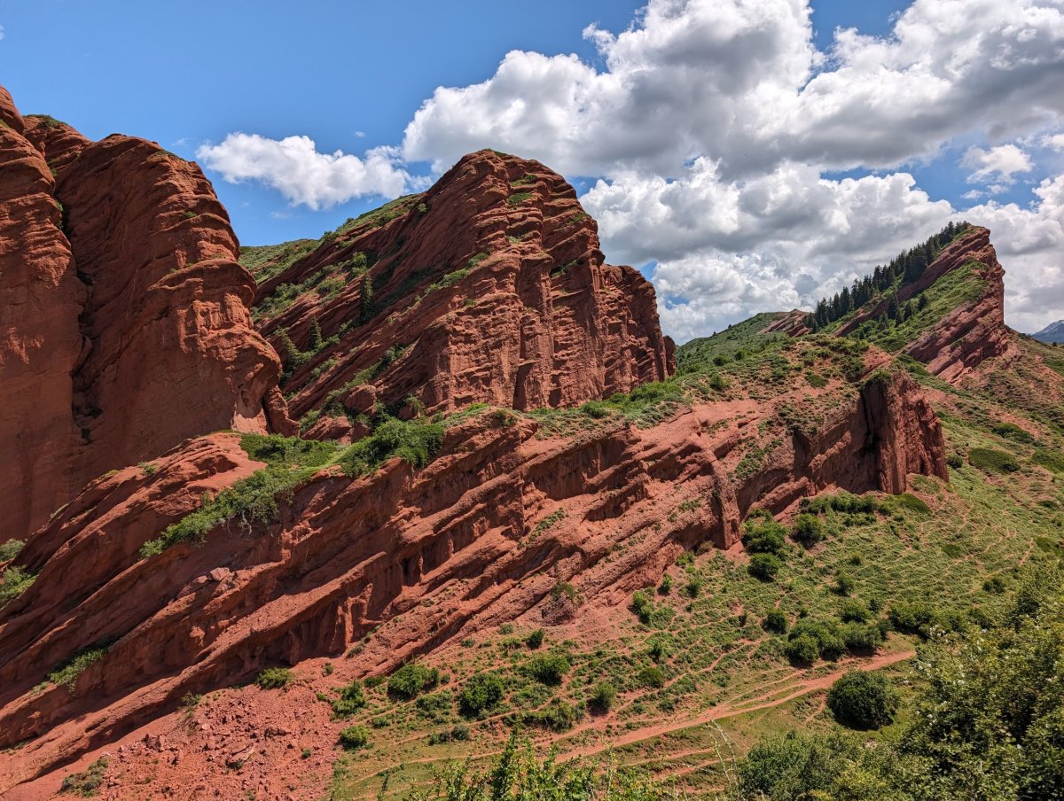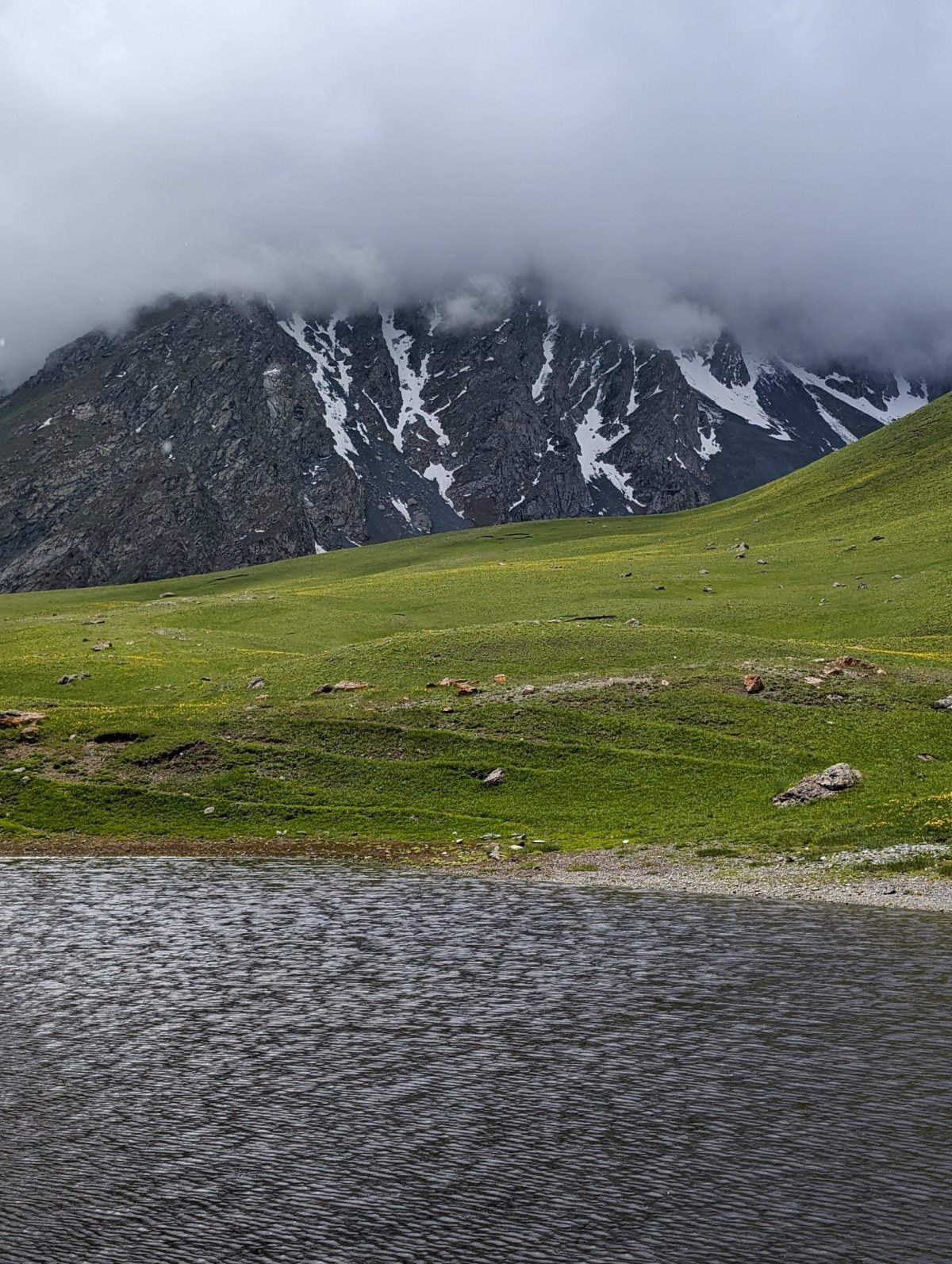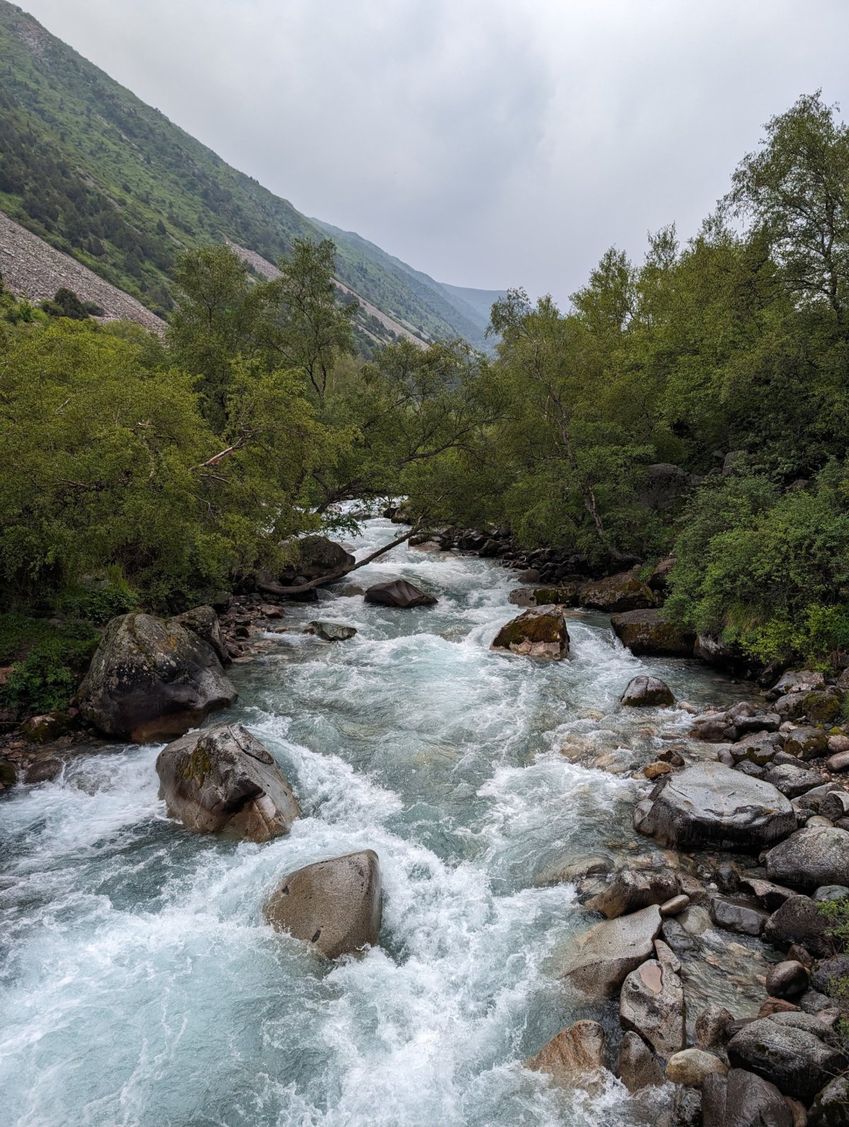Cesta byla vyšlapaná, měkká a pohodlná. Lidí jak šafránu. Cestou mě předešli Kyrgyzští záchranáři, kteří měli v horách dvoudenní cvičení. Dali jsme se do řeči, udělí společné fotky a vyměnily instagram. Angličtinou si však nepokecáte. Lidé jsou tu povětšinou velice přátelští a usměvaví.