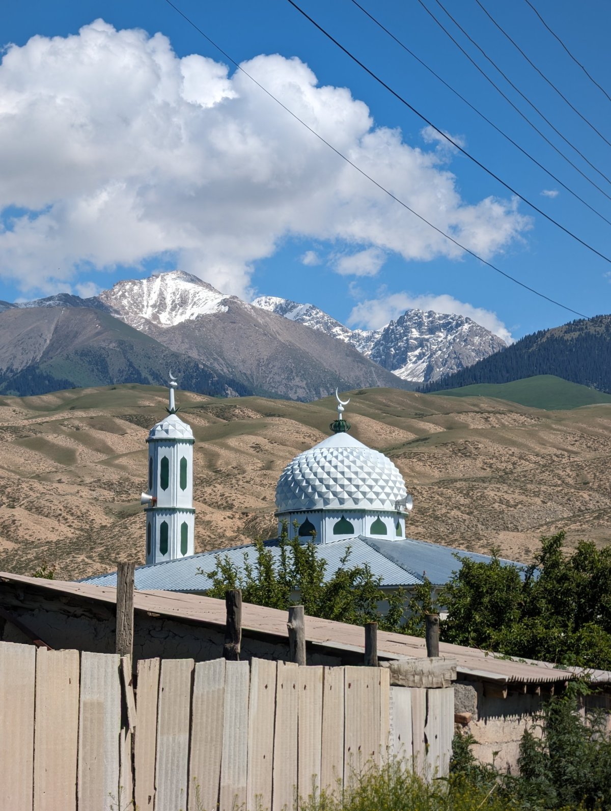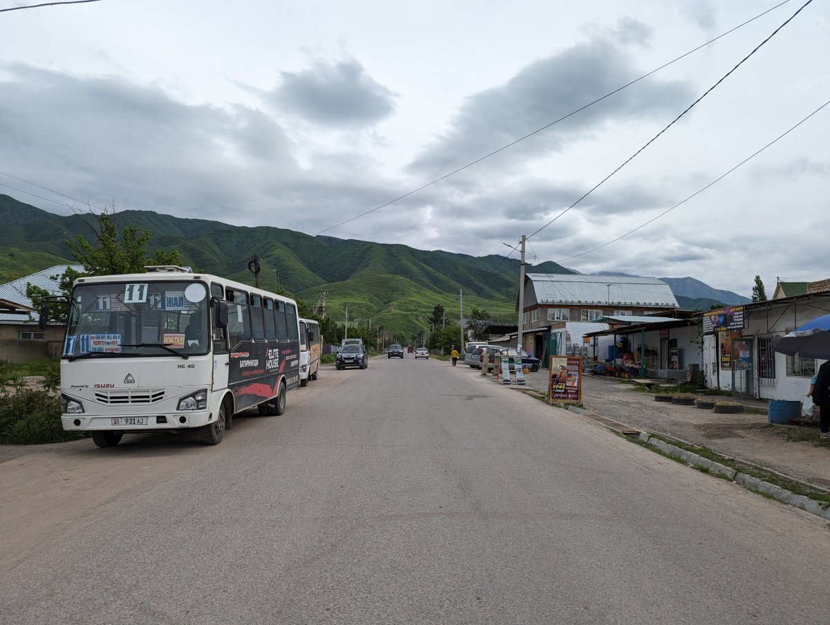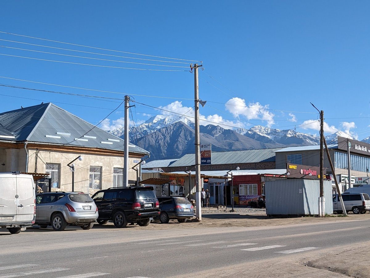 Druhá babuška volala, že řidič chce vědět, kam do Barskoonu jedu (městečko je kus od hlavní silnice). Snažil jsem se jí vysvětlit, jak má mluvit do deepl překladače a stále to nechápala. Pak začala mluvit plynně anglicky. Jako zatím jediný člověk 60+. Řidič mě s úsměvem vyhodil v centru Barskoon přes 1700 m. n. m. Velice hodní lidé, že vám zavezou až tam, kam potřebujete.